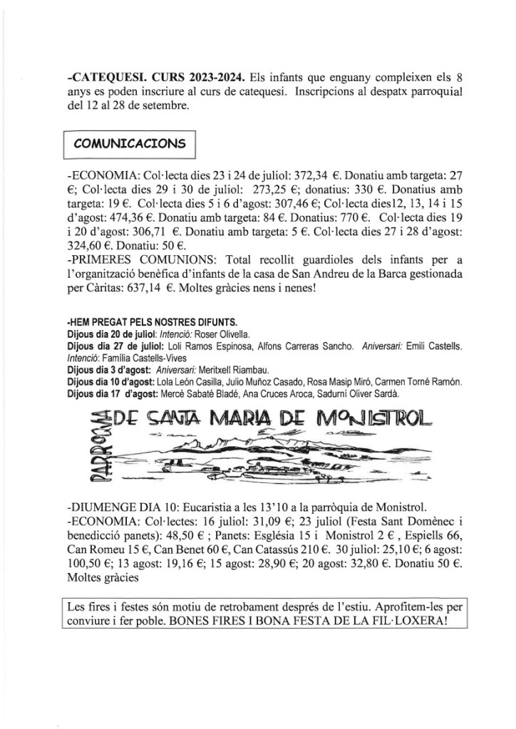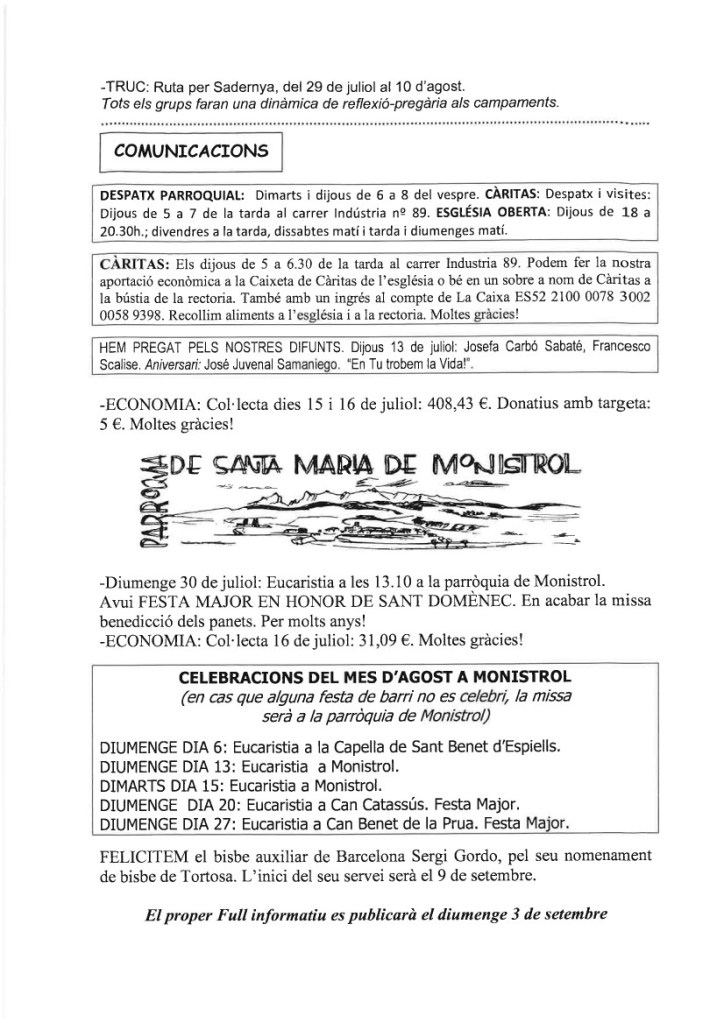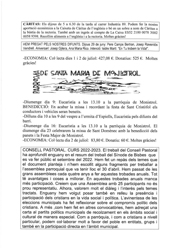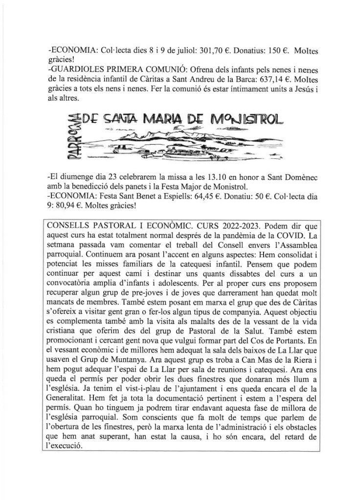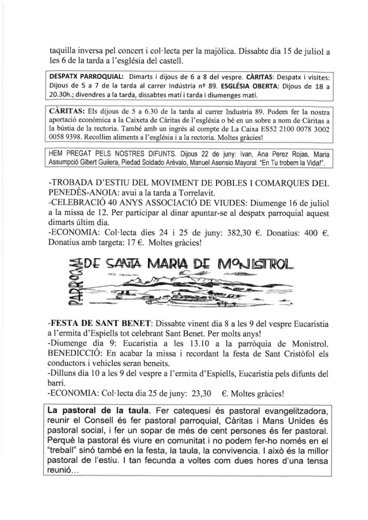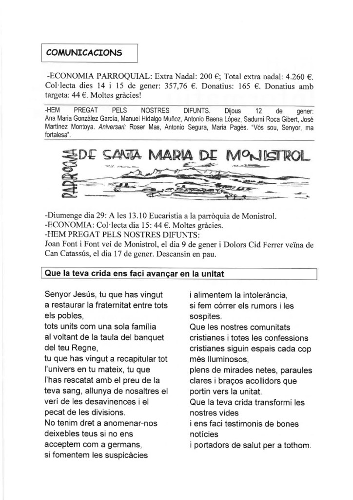 de les nostres famílies i de la nostra parròquia,