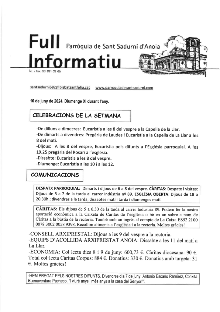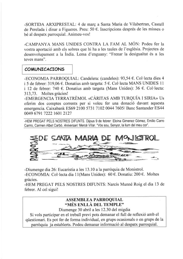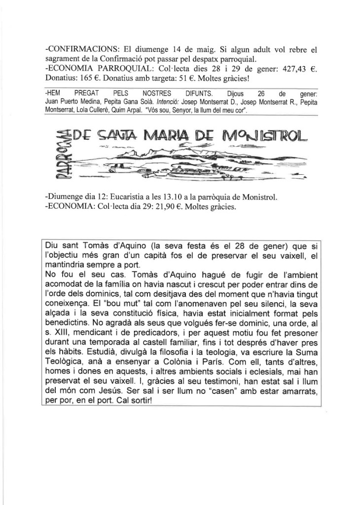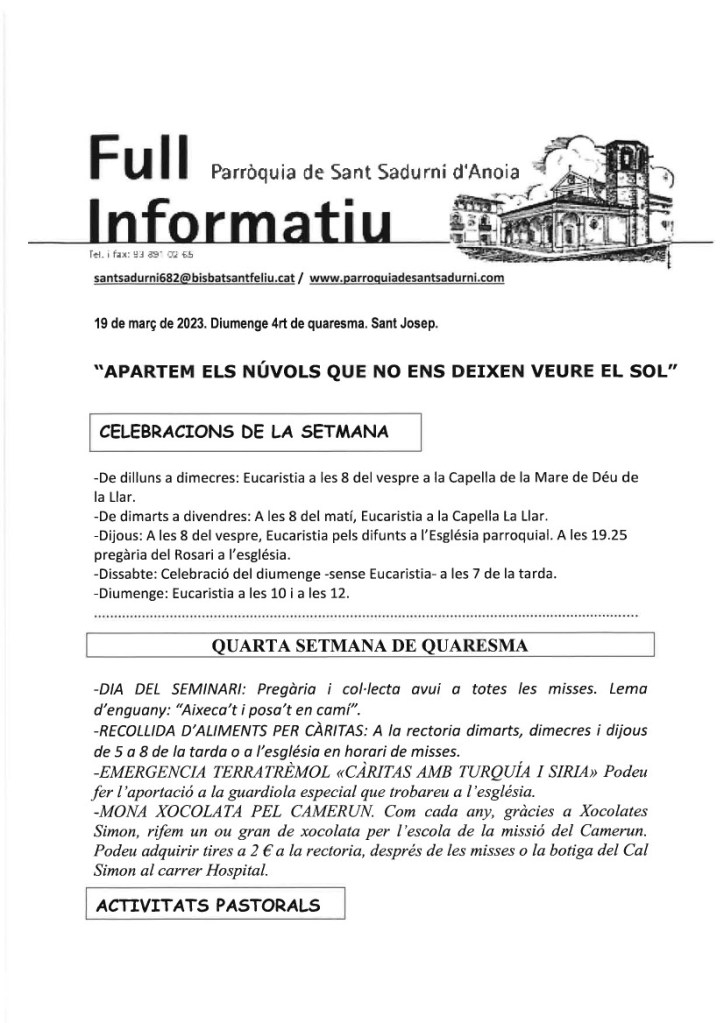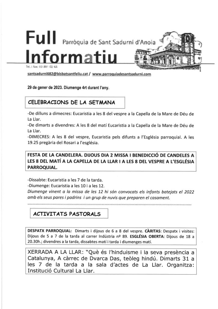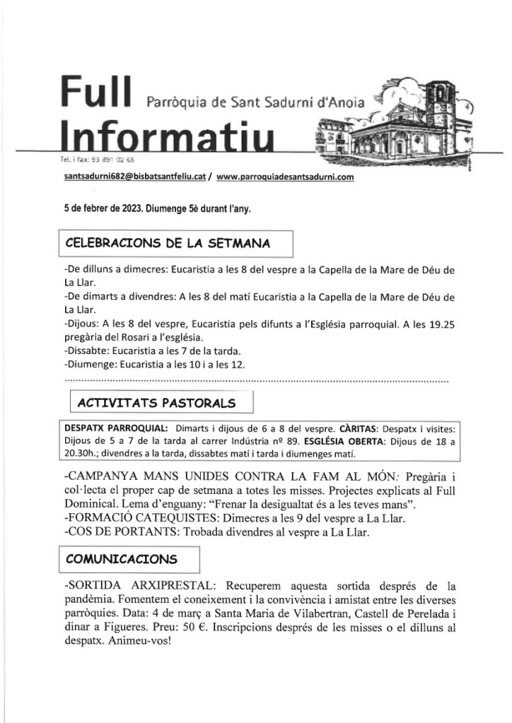 FRASE DEL DIUMENGE, PREGÀRIA I FULL PARROQUIAL de Diumenge 4 de Febrer de 2024