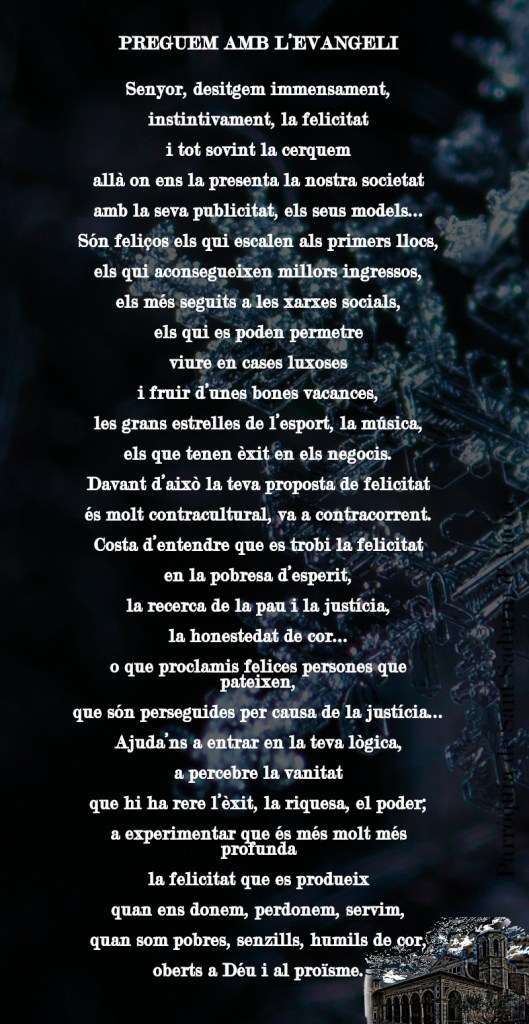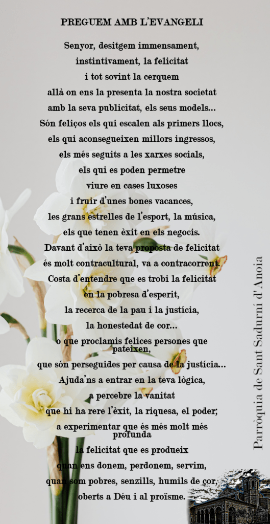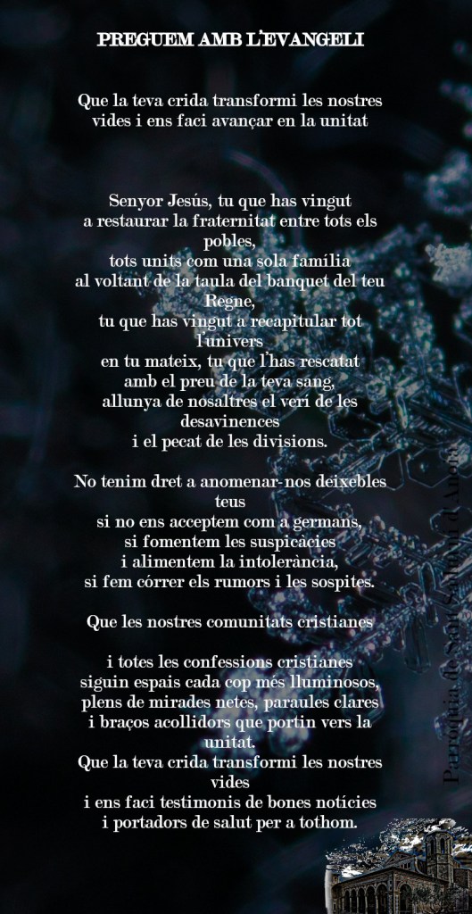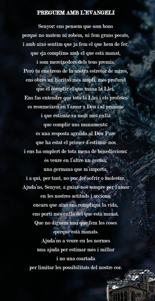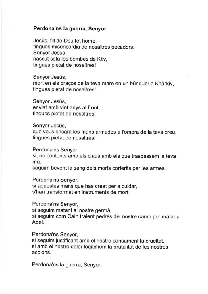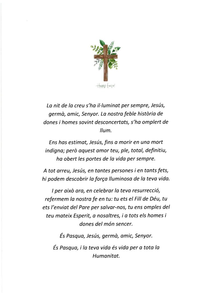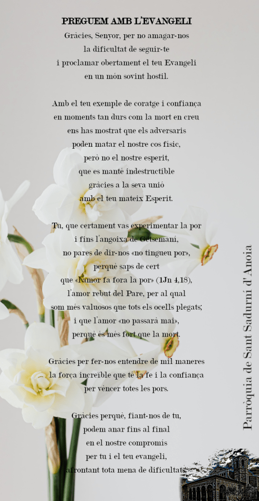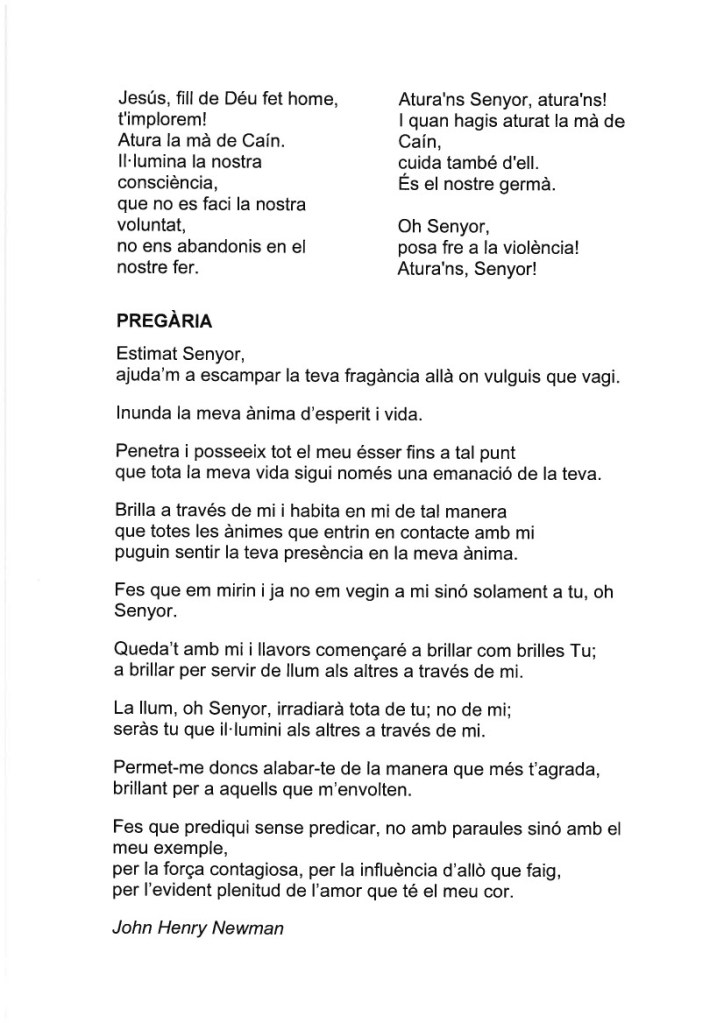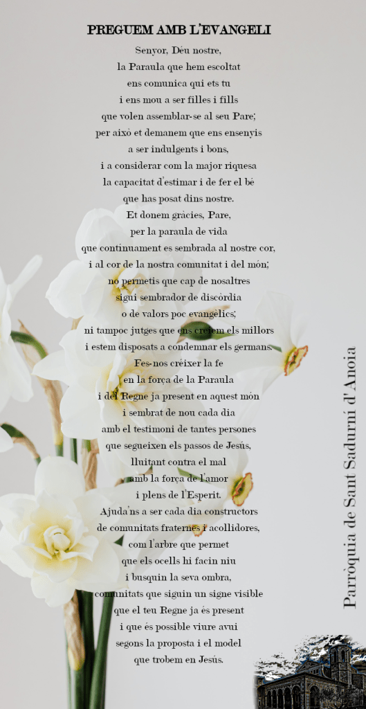 del Regne, i feu que nosaltres, que restem aquí, sapiguem acompanyar-nos amb paraules d’esperança i de fe.