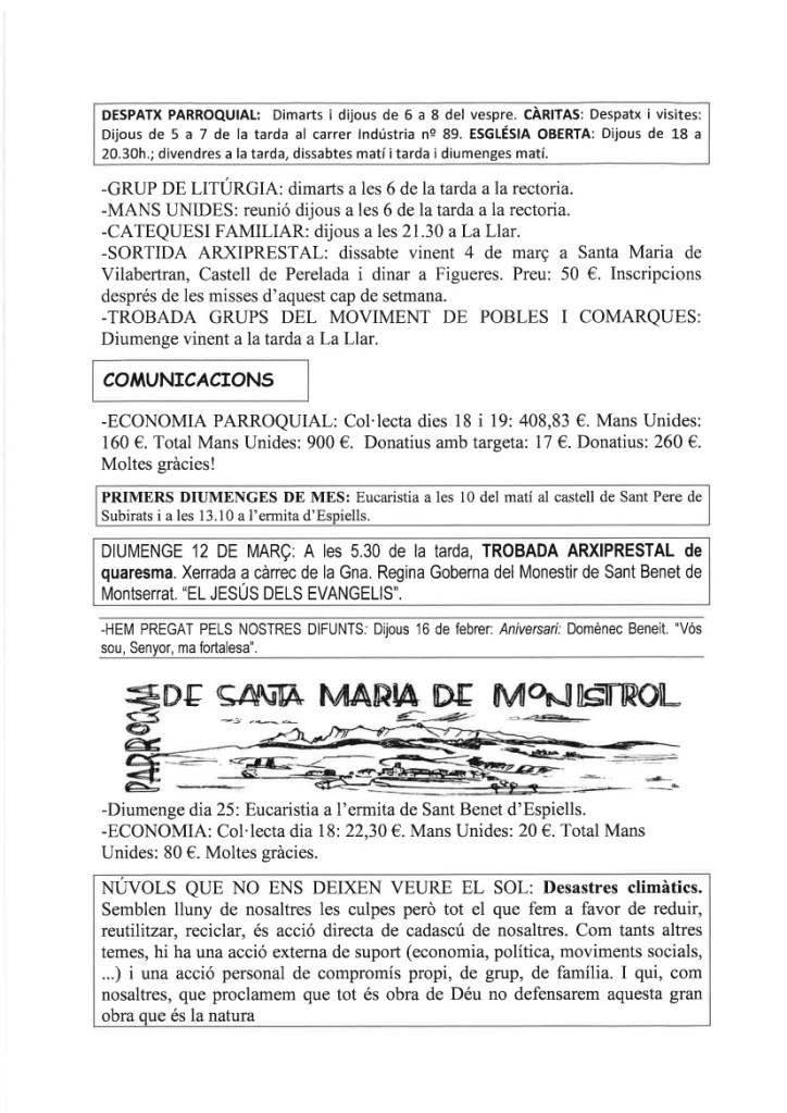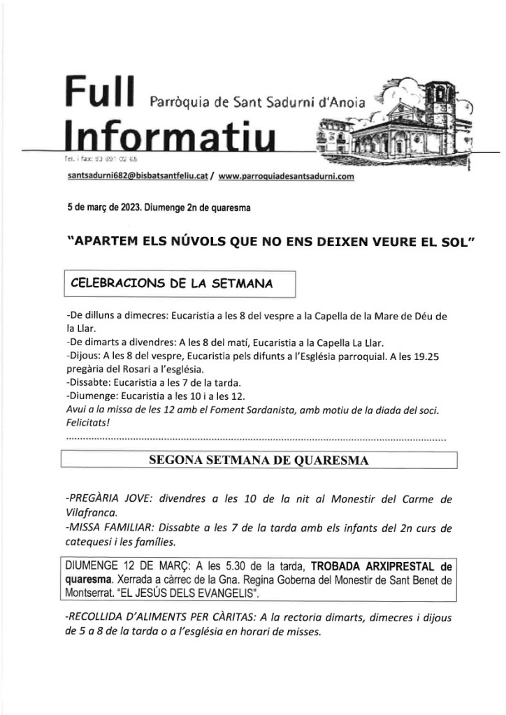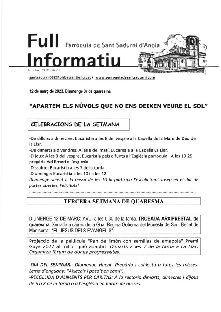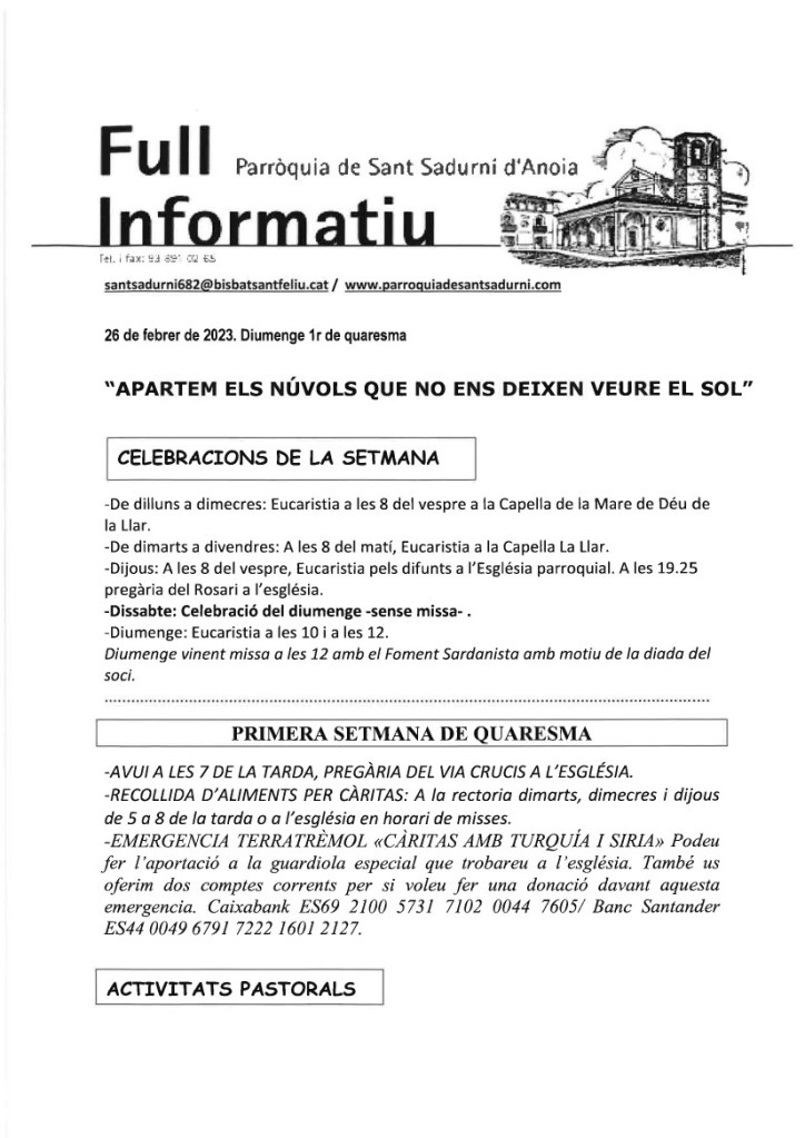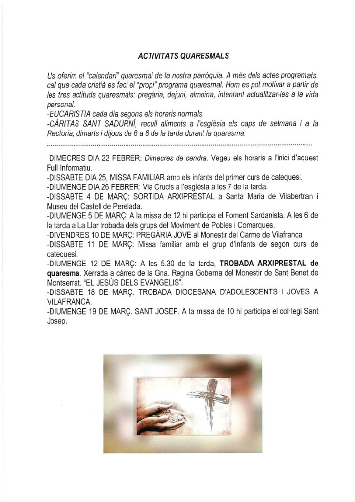 FRASE DEL DIUMENGE, PREGÀRIA I FULL PARROQUIAL de Diumenge 25 de Febrer de 2024