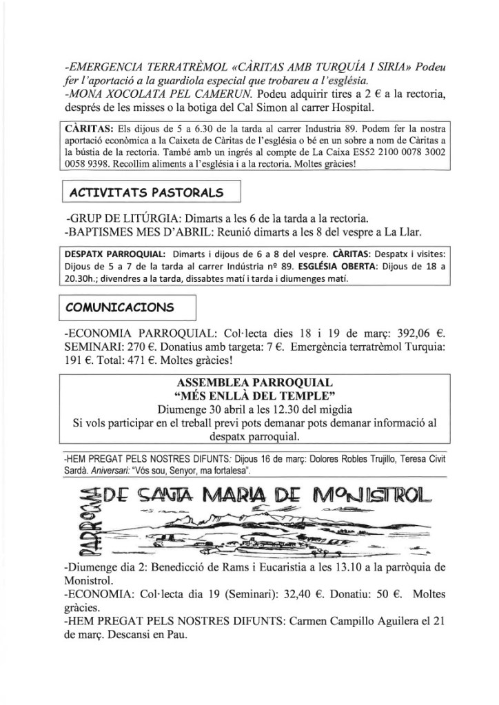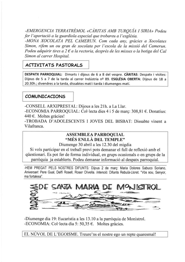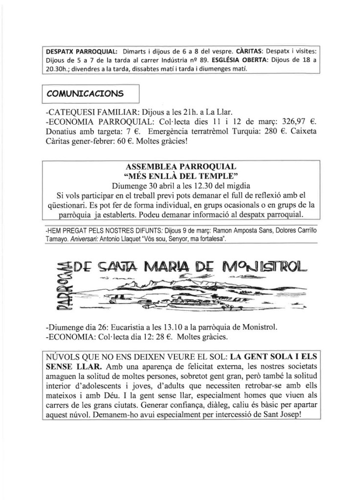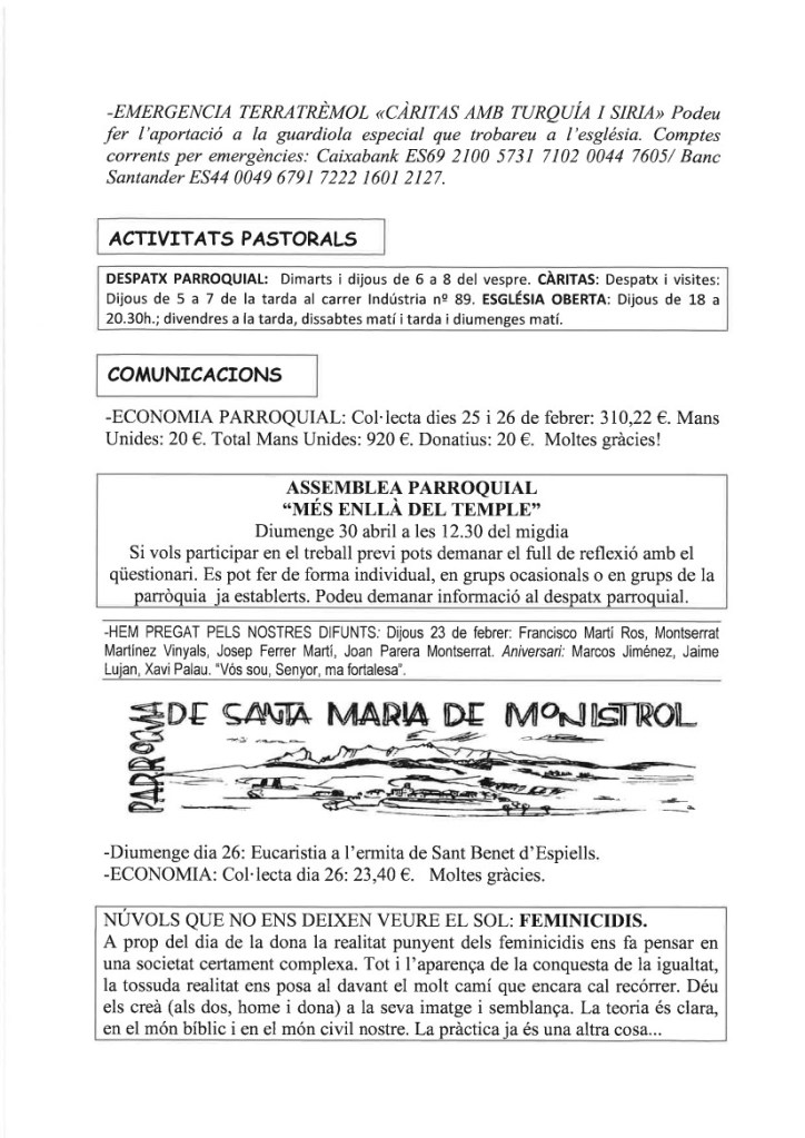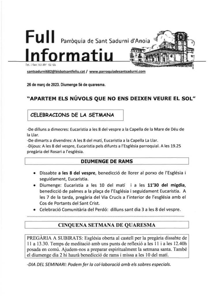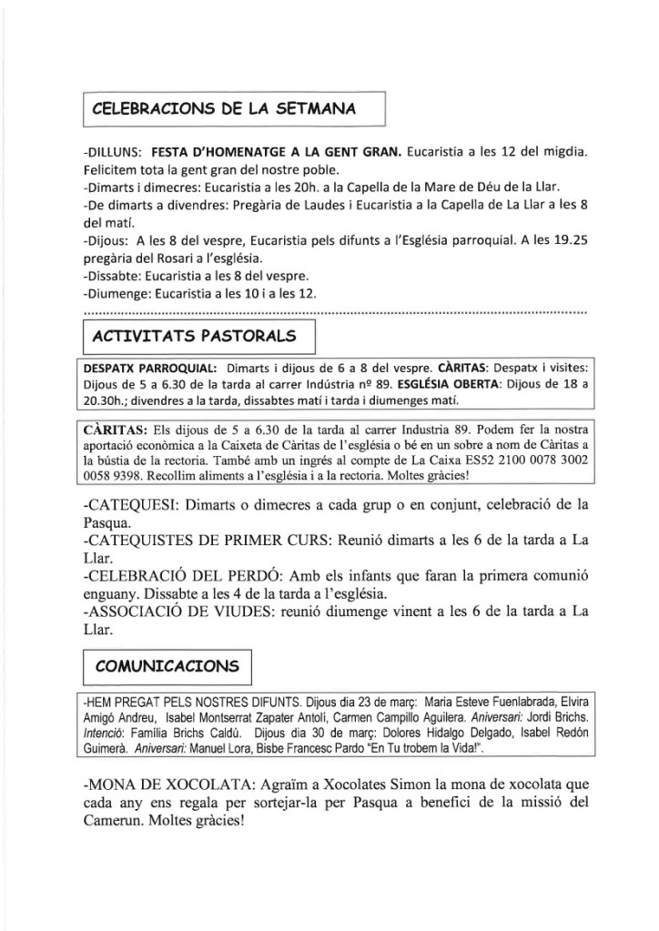 FRASE DEL DIUMENGE, PREGÀRIA I FULL PARROQUIAL de Diumenge 25 de Febrer de 2024