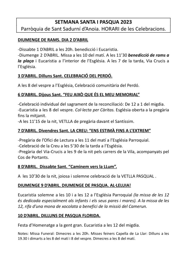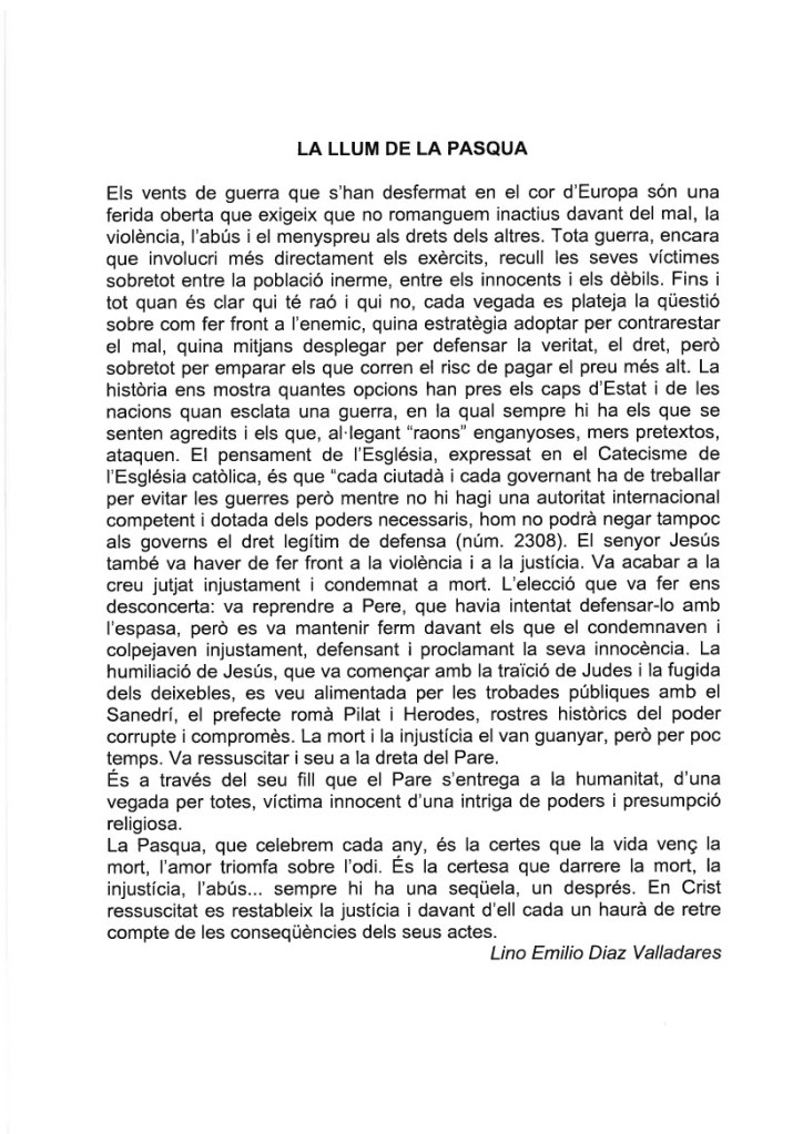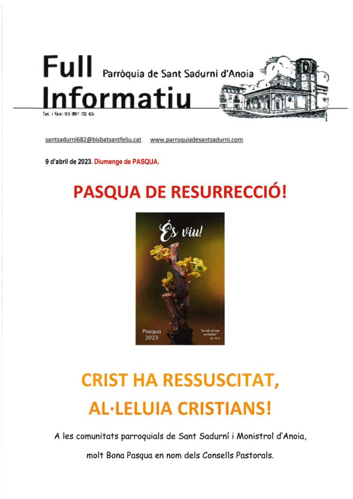 FRASE DEL DIUMENGE, PREGÀRIA I FULL PARROQUIAL de Diumenge 31 de Març de 2024