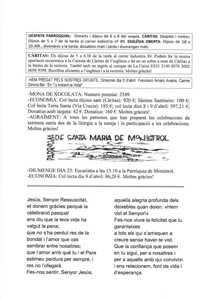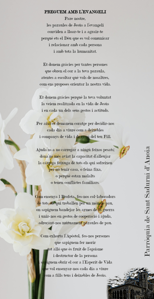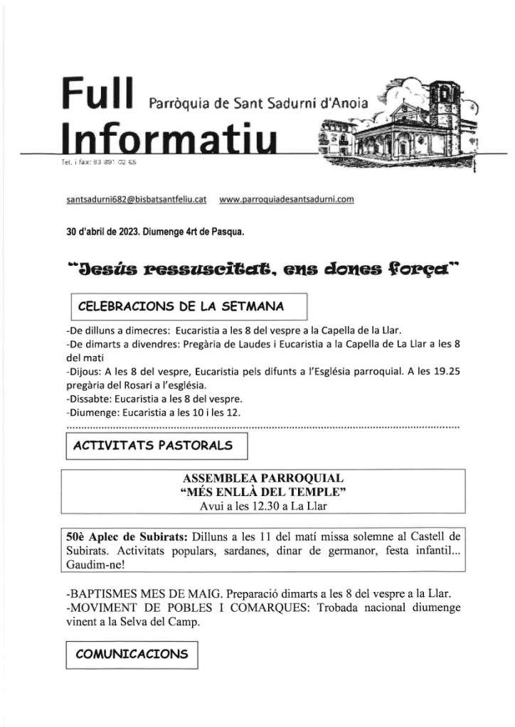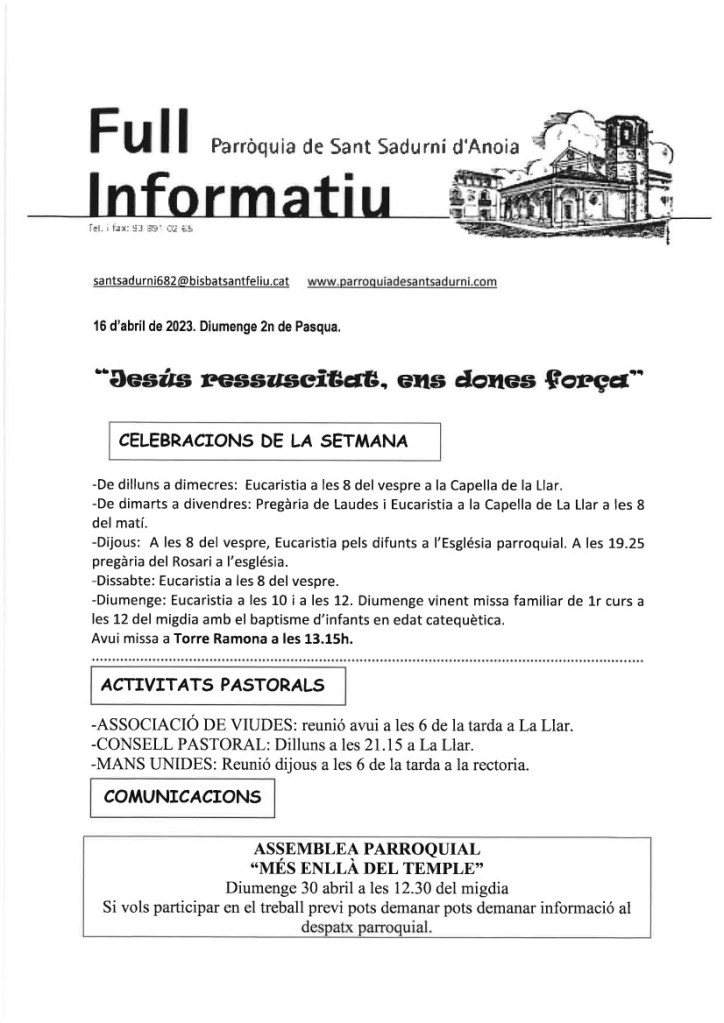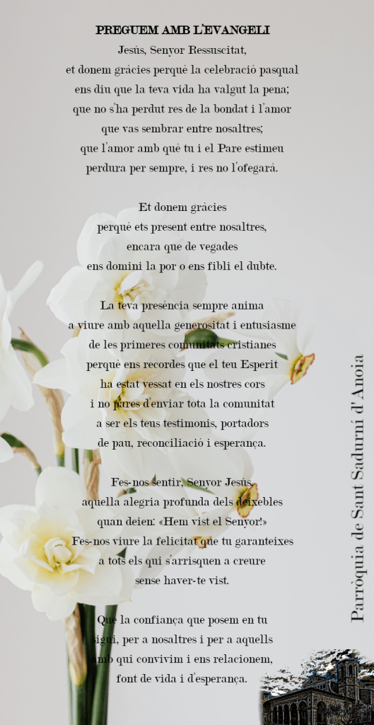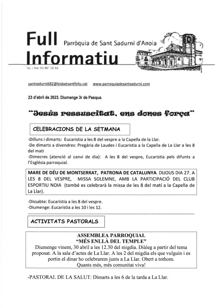FRASE DEL DIUMENGE, PREGÀRIA I FULL PARROQUIAL de Diumenge 21 d’Abril de 2024