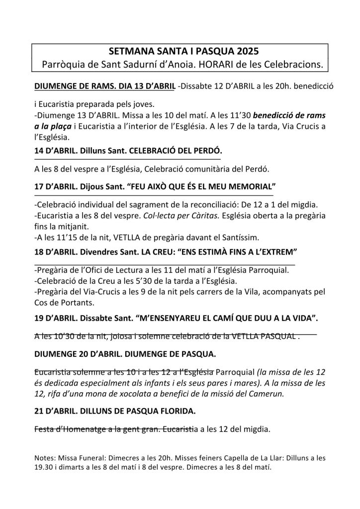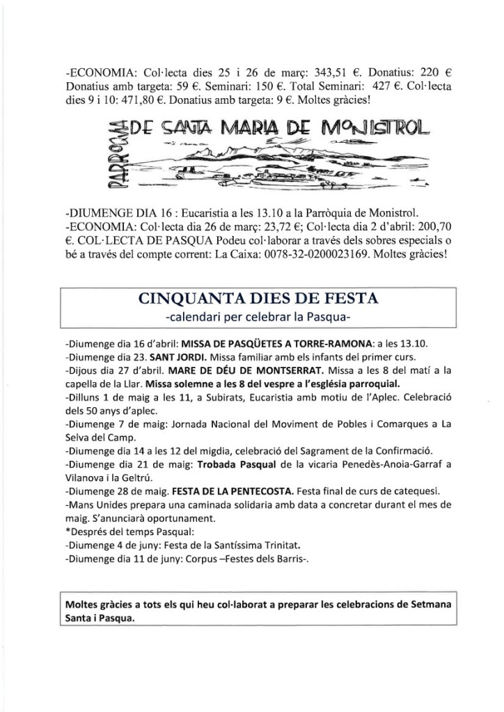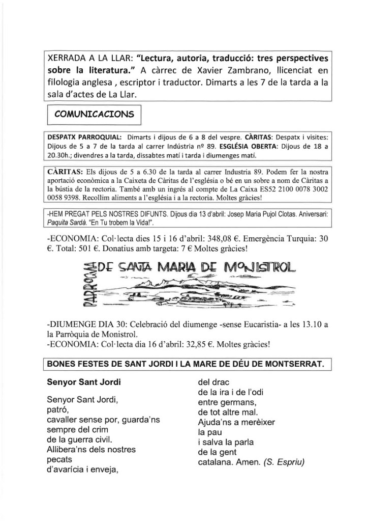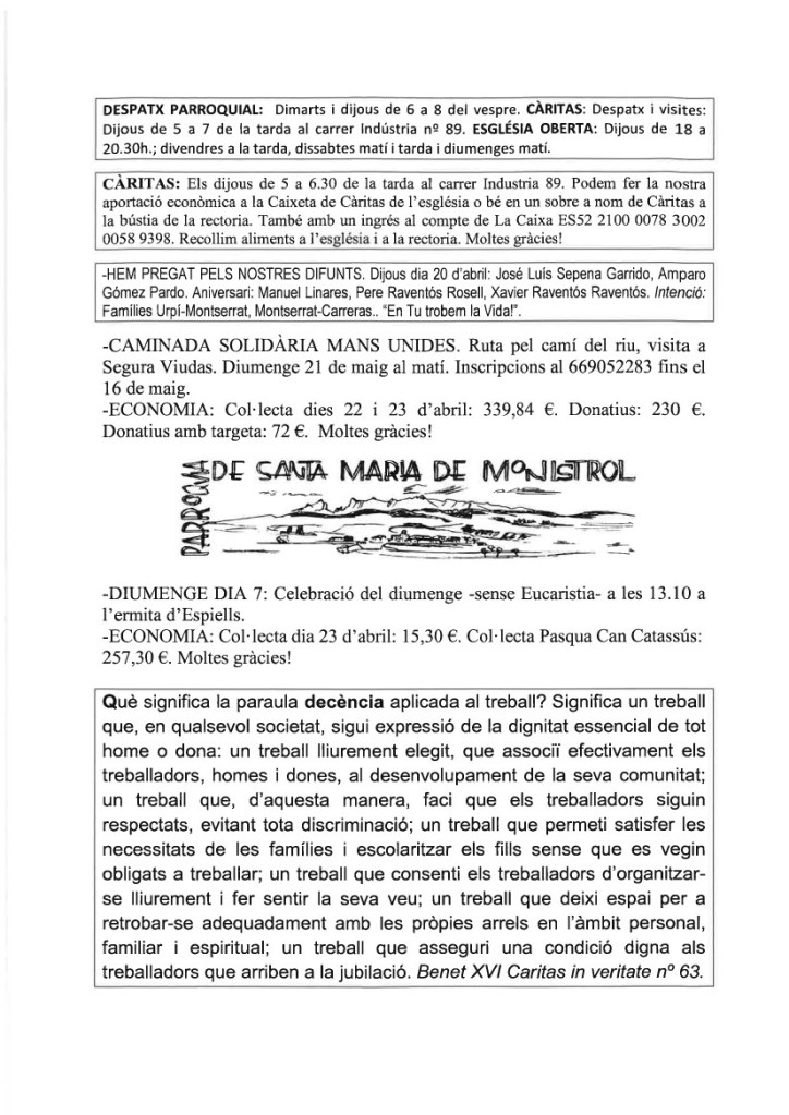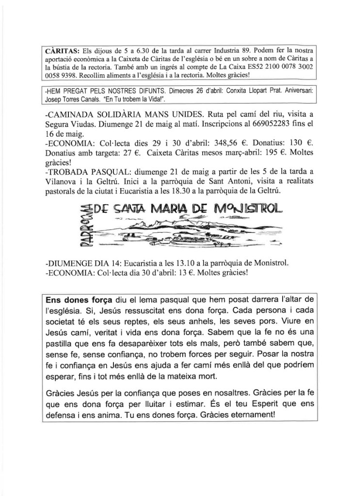 FRASE DEL DIUMENGE, PREGÀRIA I FULL PARROQUIAL de Diumenge 21 d’Abril de 2024