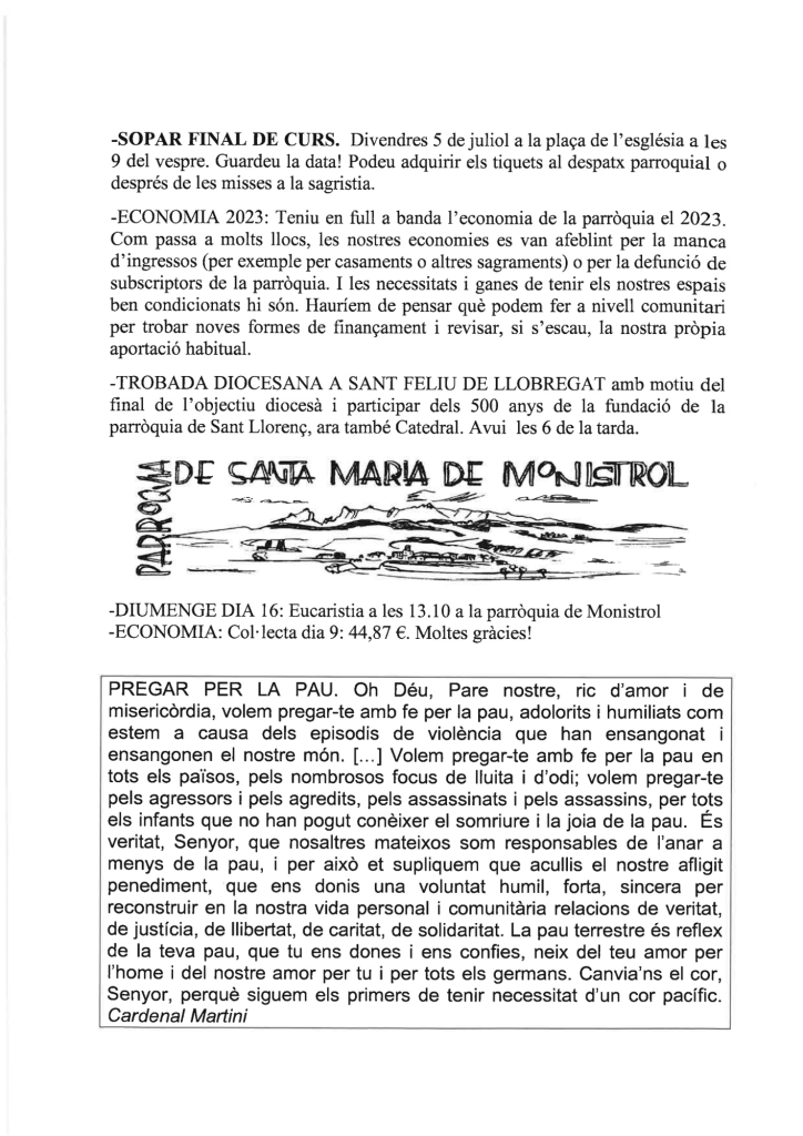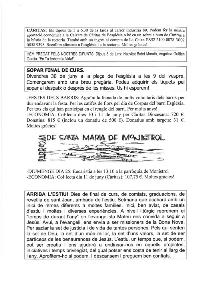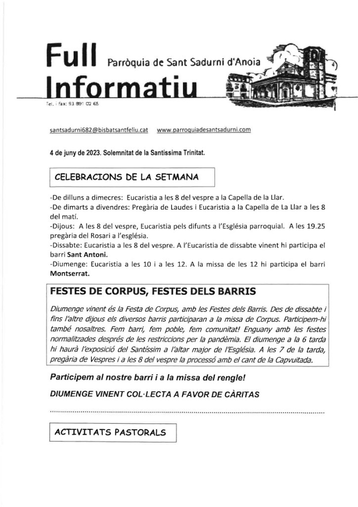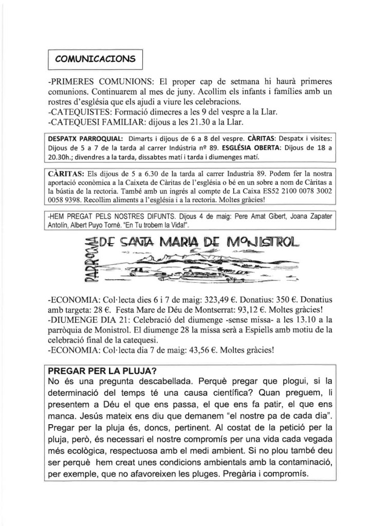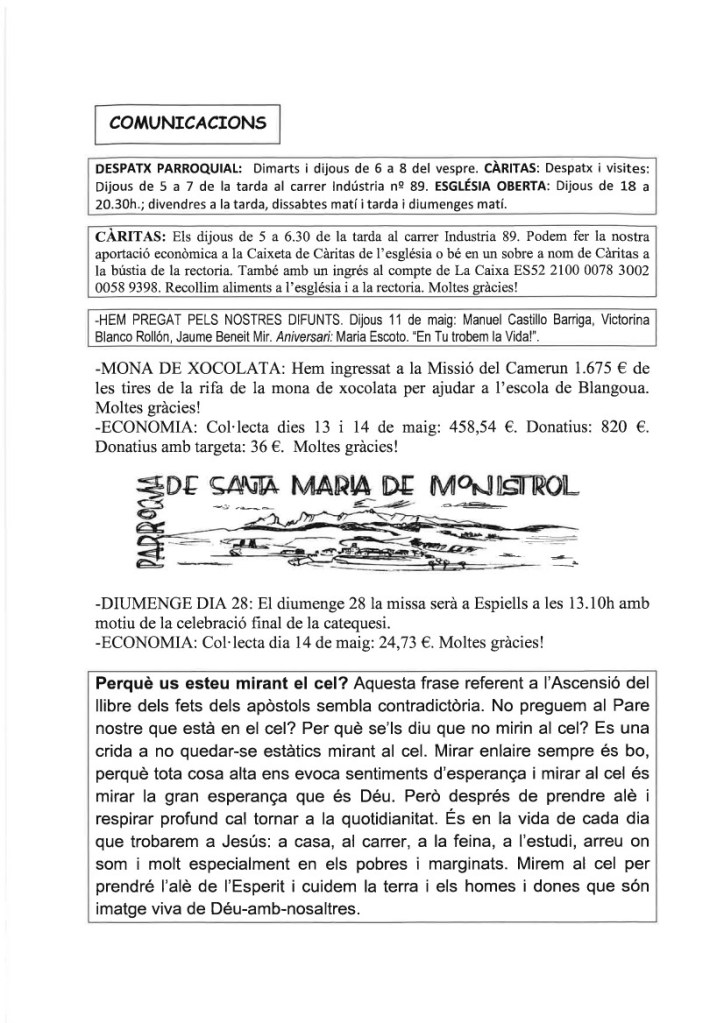 FRASE DEL DIUMENGE, PREGÀRIA I FULL PARROQUIAL de Diumenge 19 de maig de 2024