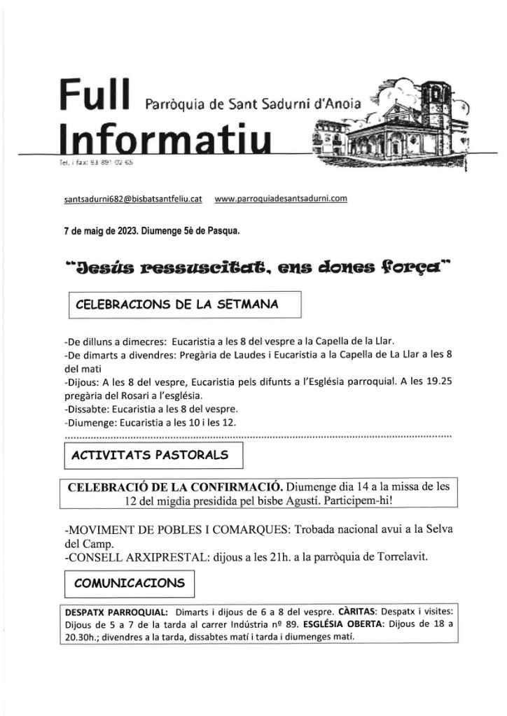FRASE DEL DIUMENGE, PREGÀRIA I FULL PARROQUIAL de Diumenge 12 de maig de 2024