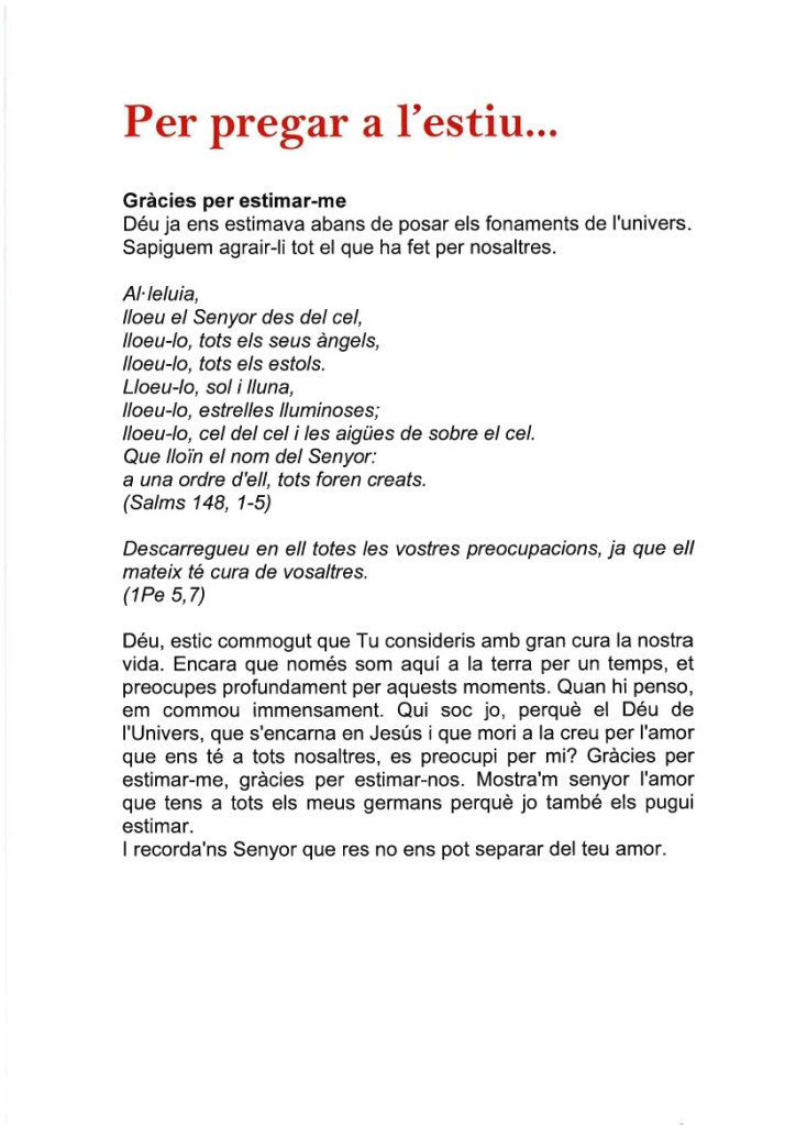 vides per acollir i compartir el seu Amor escampat per l’Univers. Que Ell