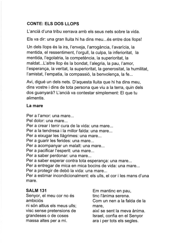 Que no ens faci por la mort, Pare,