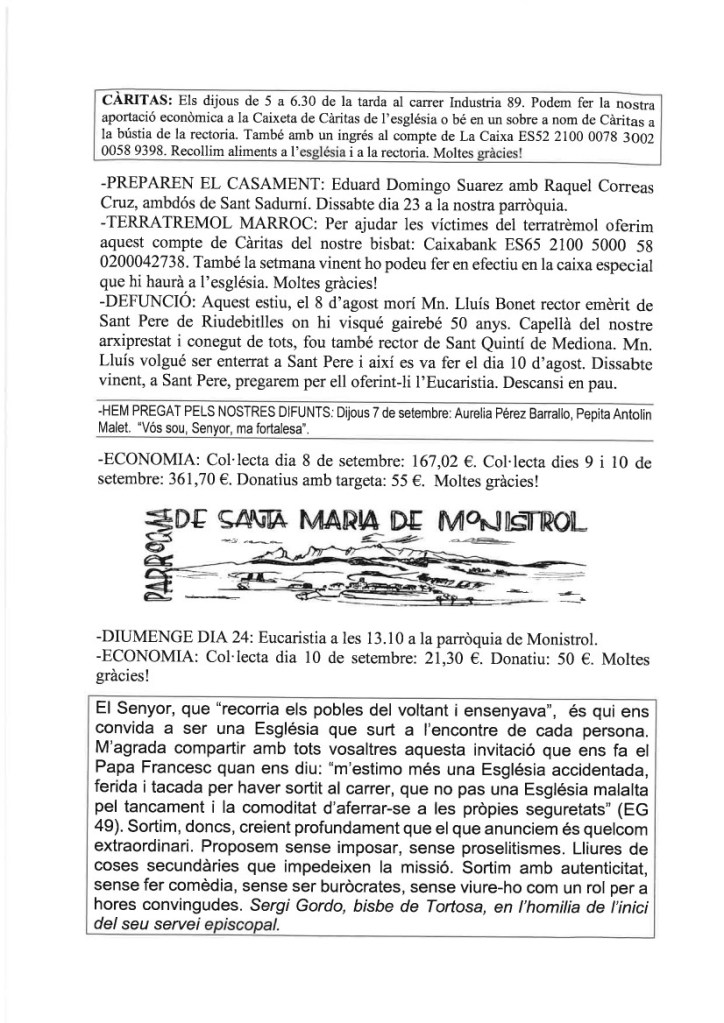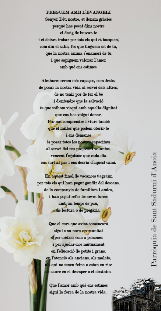 FRASE DEL DIUMENGE, PREGÀRIA I FULL PARROQUIAL de Diumenge 8 d’Octubre de 2023