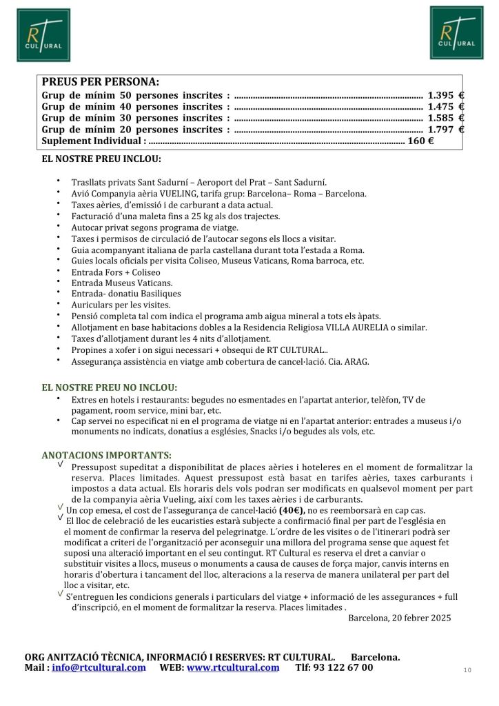PELEGRINATGE A ROMA OCTUBRE 2025
