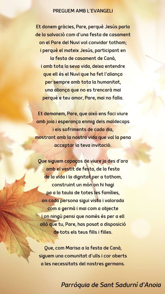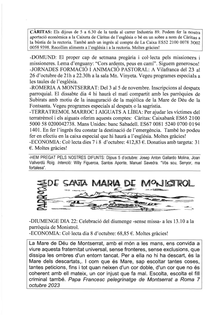 Publicat el Octubre 15, 2023 FRASE DEL DIUMENGE, PREGÀRIA I FULL PARROQUIAL de Diumenge 15 d’Octubre de 2023