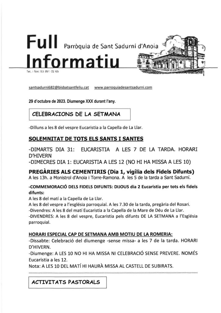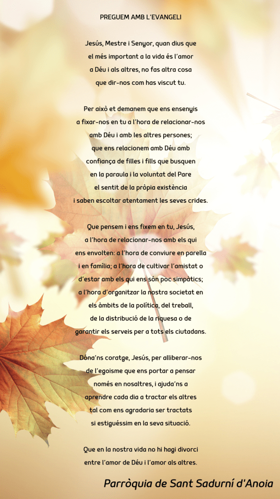 Publicat el Octubre 29, 2023 FRASE DEL DIUMENGE, PREGÀRIA I FULL PARROQUIAL de Diumenge 29 d’Octubre de 2023