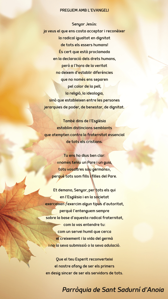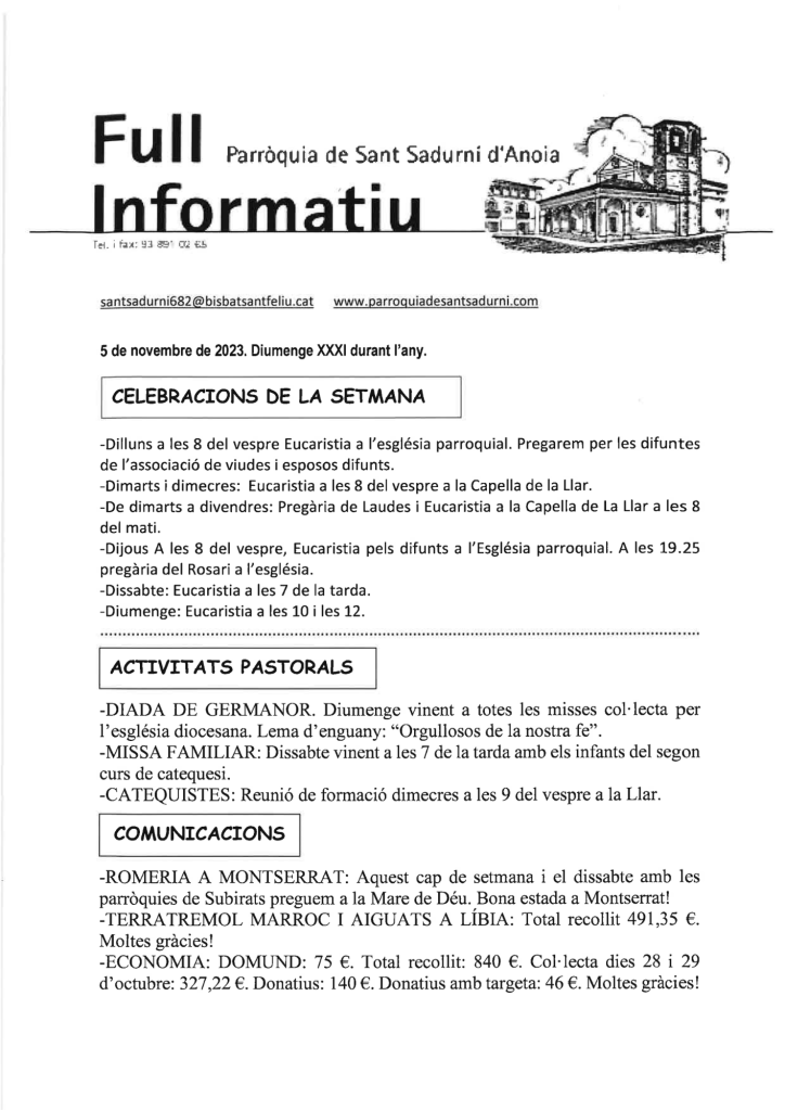 Publicat el Novembre 5, 2023 FRASE DEL DIUMENGE, PREGÀRIA I FULL PARROQUIAL de Diumenge 5 de Novembre de 2023