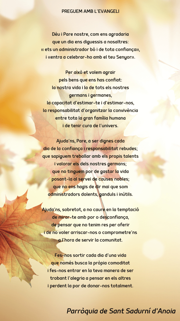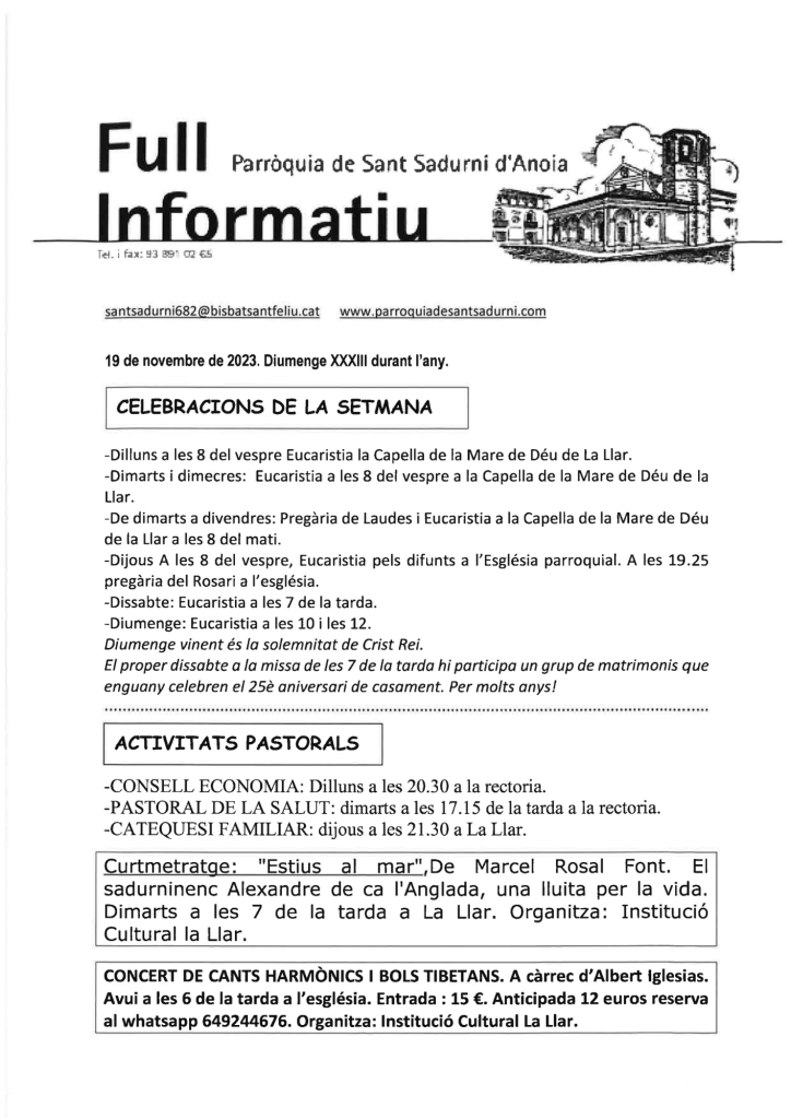 Publicat el Novembre 19, 2023 FRASE DEL DIUMENGE, PREGÀRIA I FULL PARROQUIAL de Diumenge 19 de Novembre de 2023