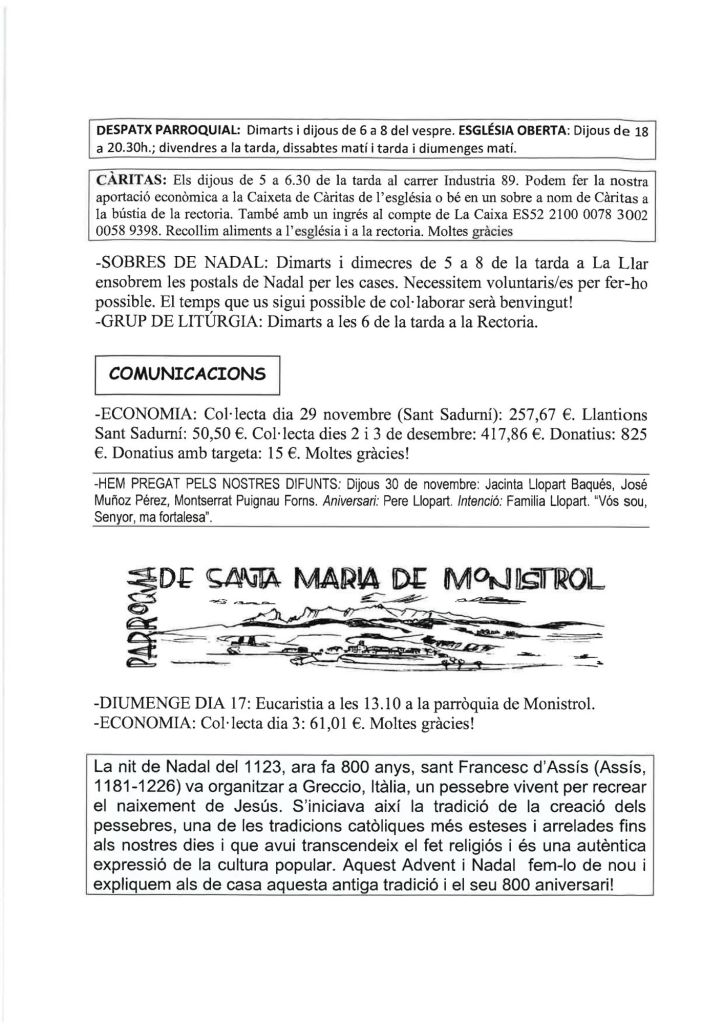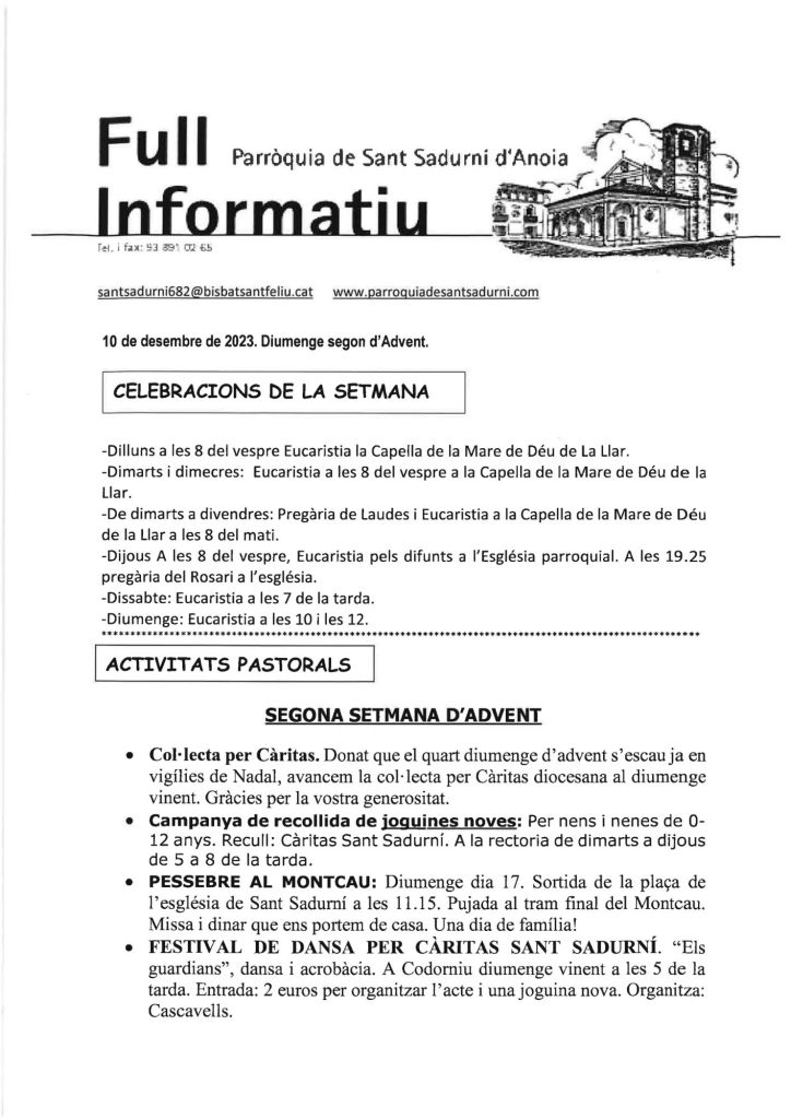 Publicat el Desembre 9, 2023 FRASE DEL DIUMENGE, PREGÀRIA I FULL PARROQUIAL de Diumenge 10 de Desembre de 2023