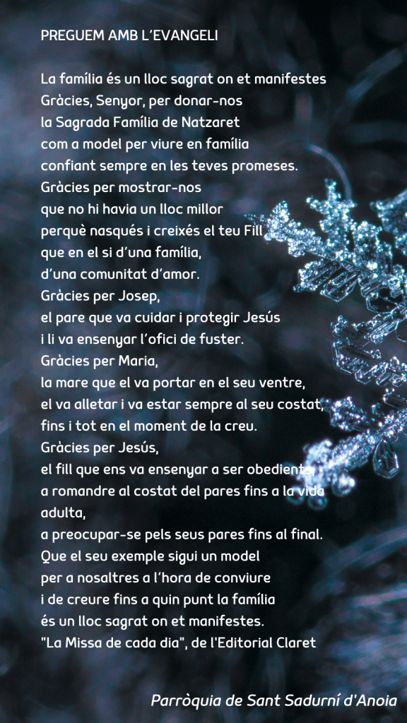 Publicat el Desembre 31, 2023 FRASE DEL DIUMENGE, PREGÀRIA I FULL PARROQUIAL de Diumenge 31 de Desembre de 2023