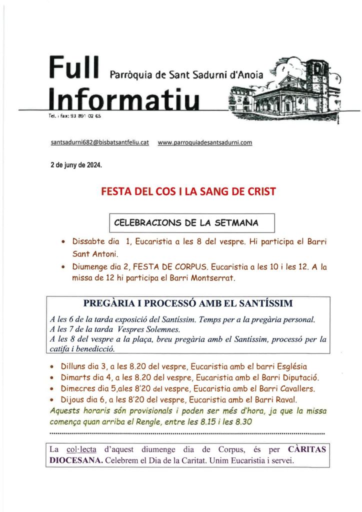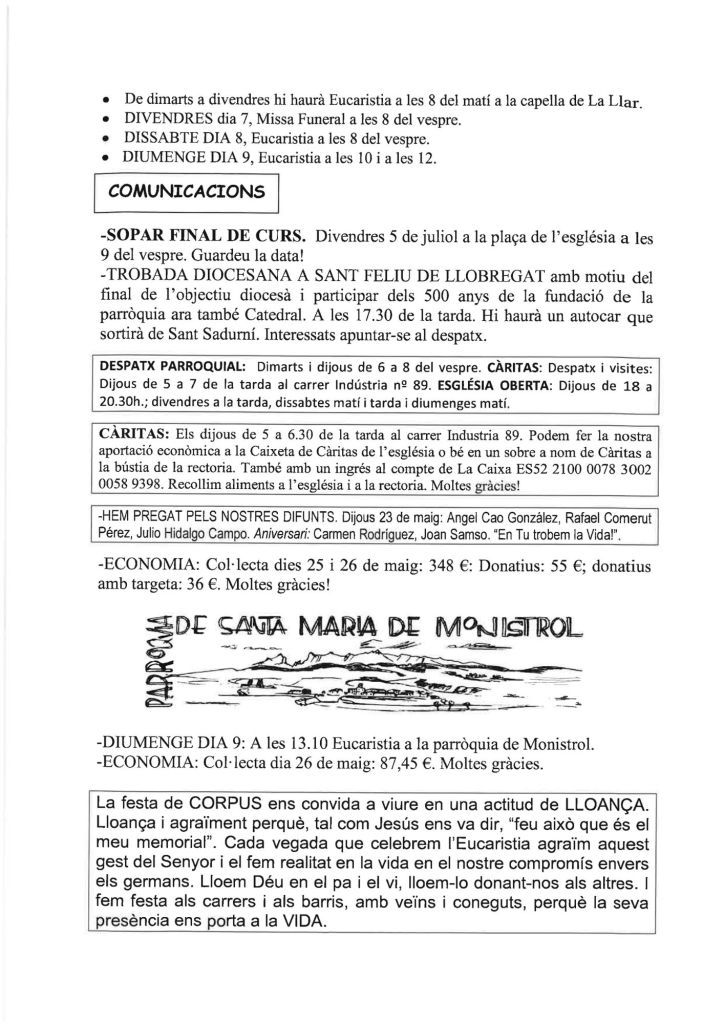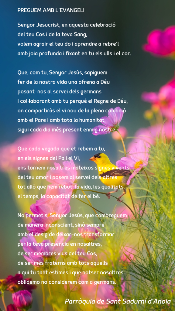 Publicat el Juny 2, 2024 FRASE DEL DIUMENGE, PREGÀRIA I FULL PARROQUIAL de Diumenge 2 de juny de 2024