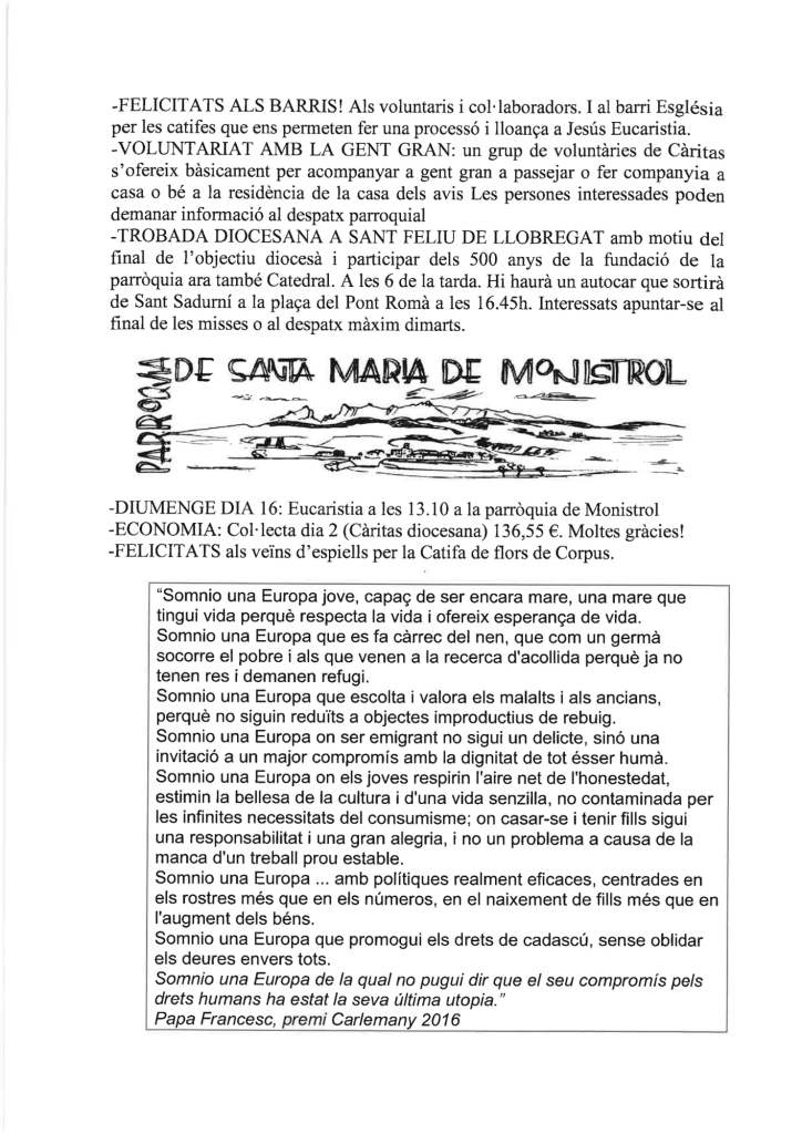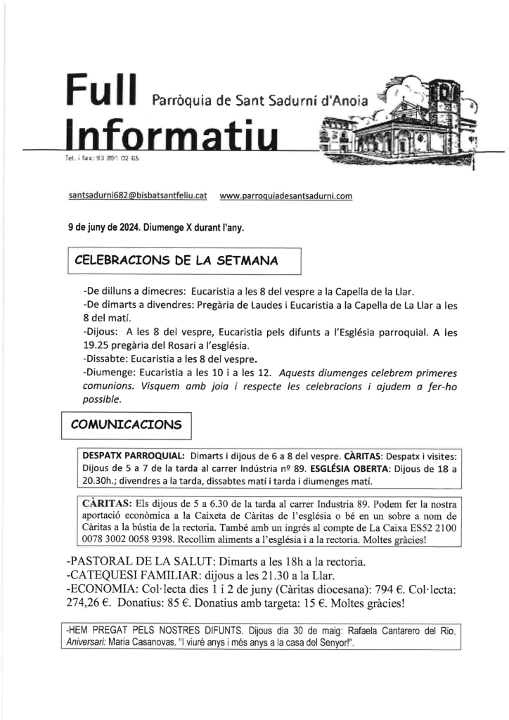 Publicat el Juny 9, 2024 FRASE DEL DIUMENGE, PREGÀRIA I FULL PARROQUIAL de Diumenge 9 de juny de 2024