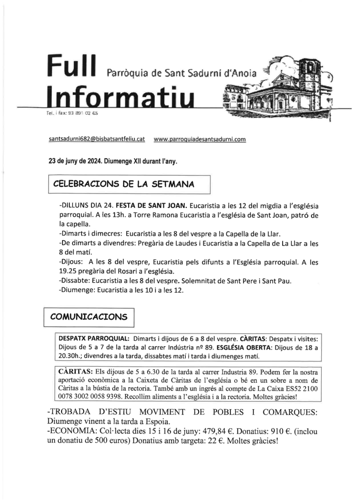 Publicat el Juny 23, 2024 FRASE DEL DIUMENGE, PREGÀRIA I FULL PARROQUIAL de Diumenge 23 de juny de 2024
