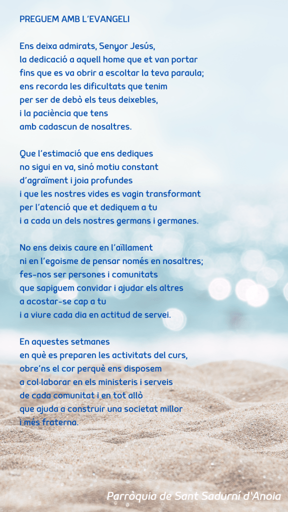 Publicat el Setembre 8, 2024 FRASE DEL DIUMENGE, PREGÀRIA I FULL PARROQUIAL de Diumenge 8 de Setembre de 2024