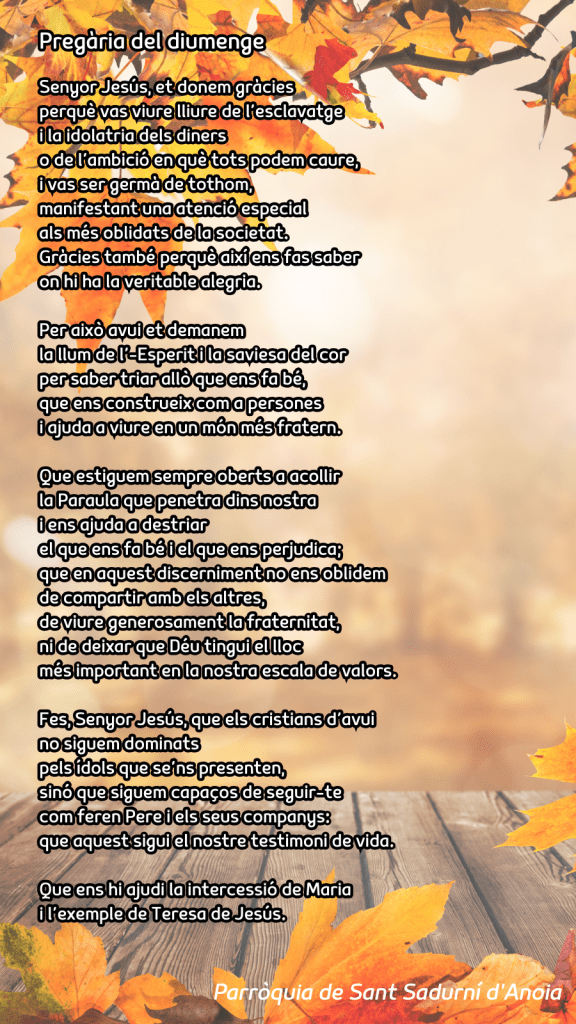 Publicat el Octubre 20, 2024 FRASE DEL DIUMENGE, PREGÀRIA I FULL PARROQUIAL de Diumenge 20 de Octubre de 2024