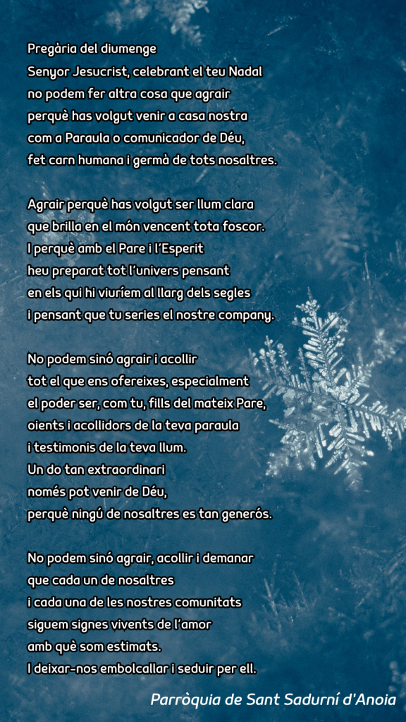 FRASE DEL DIUMENGE, PREGÀRIA I FULL DOMINICAL de Diumenge 5 de Gener 2025