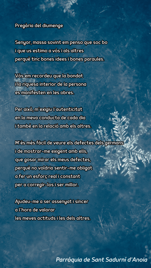 FRASE DEL DIUMENGE, PREGÀRIA I FULL DOMINICAL de Diumenge 2 de Març 2025