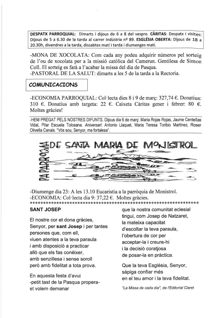 FRASE DEL DIUMENGE, PREGÀRIA I FULL DOMINICAL de Diumenge 9 de Març 2025