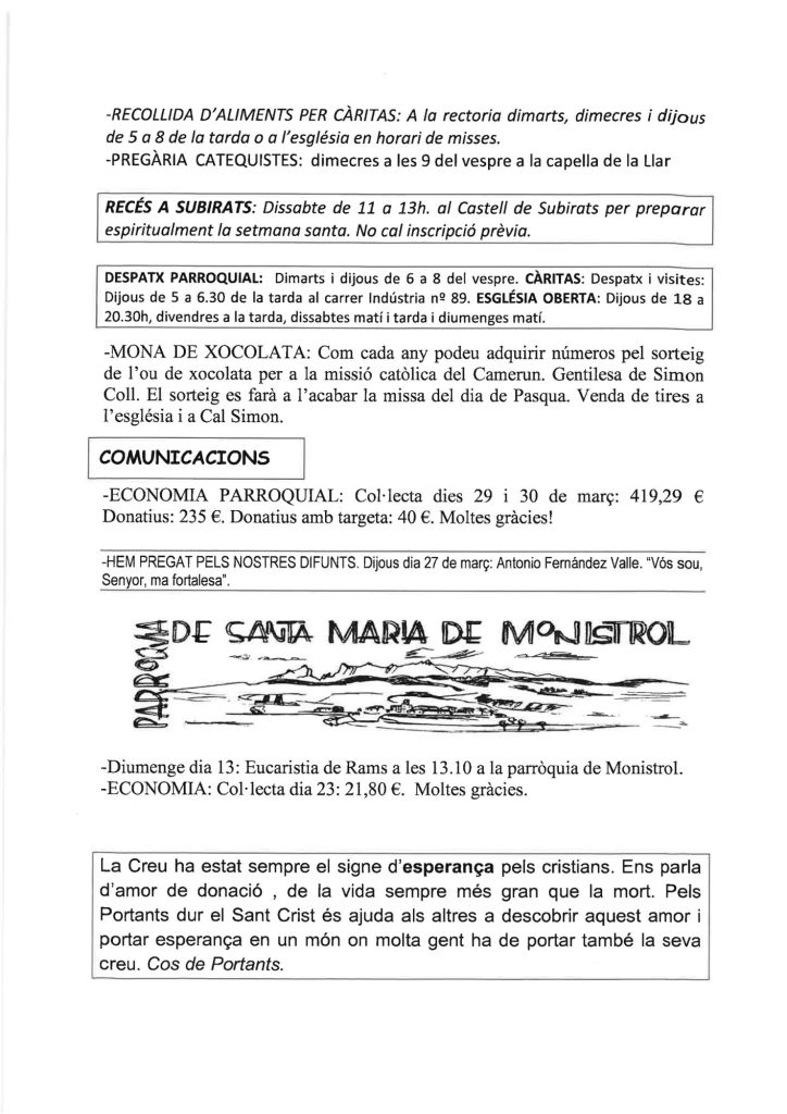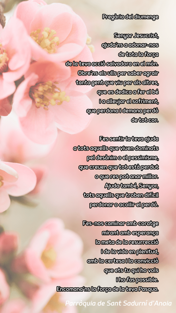 Publicat el Abril 6, 2025 FRASE DEL DIUMENGE, PREGÀRIA I FULL DOMINICAL de Diumenge 6 d’Abril de 2025