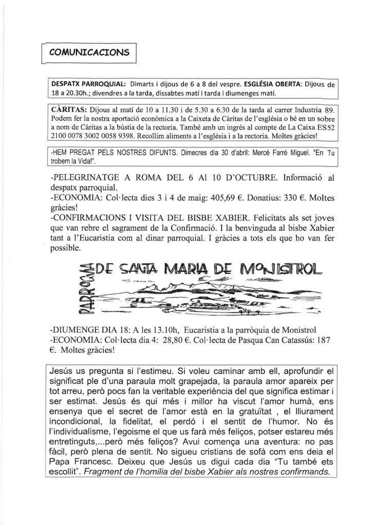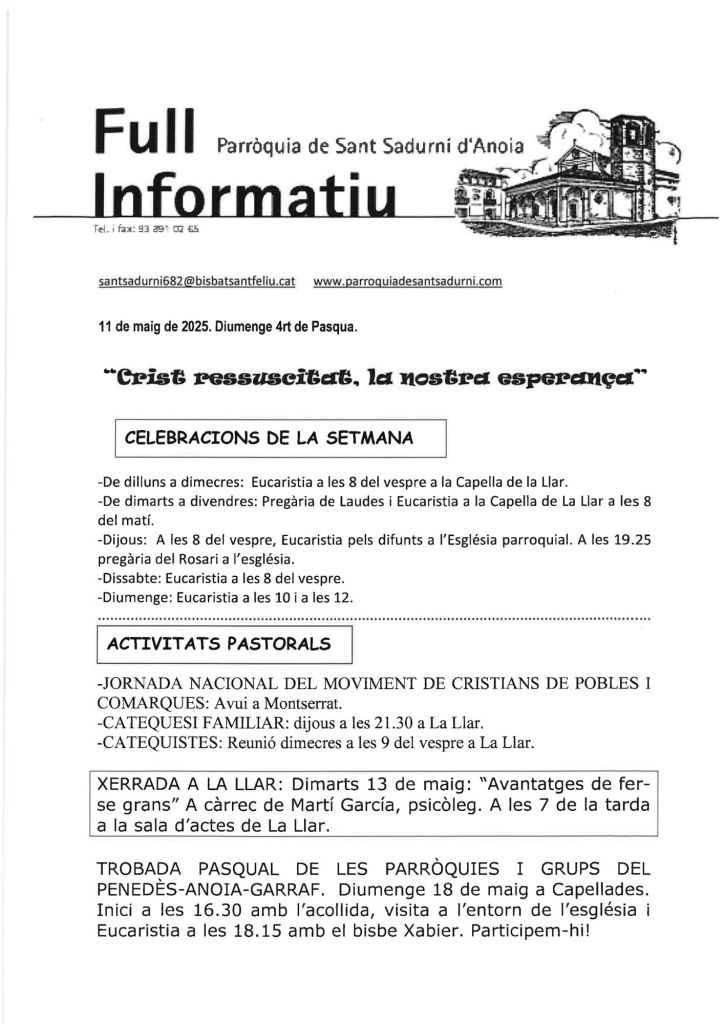 Publicat el Mai 11, 2025 FRASE DEL DIUMENGE, PREGÀRIA I FULL DOMINICAL de Diumenge 11 de maig de 2025