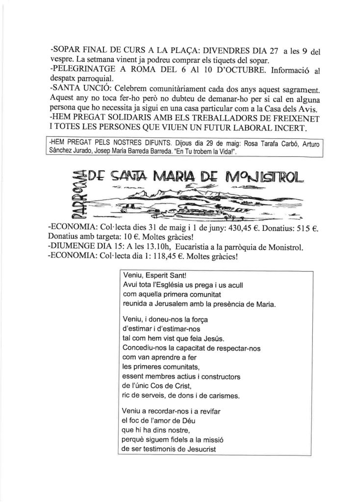 FRASE DEL DIUMENGE, PREGÀRIA I FULL DOMINICAL de Diumenge 1 de juny de 2025