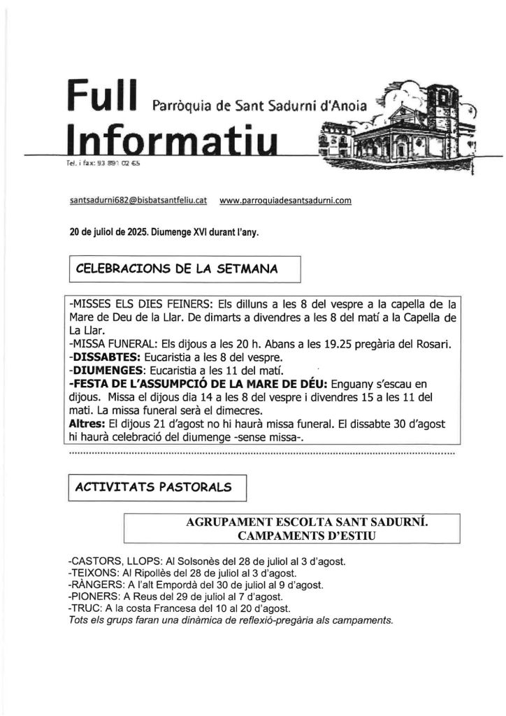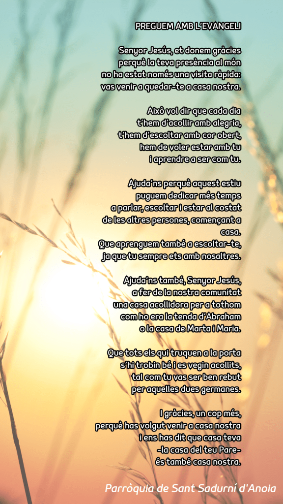 Publicat el Juliol 20, 2025 FRASE DEL DIUMENGE, PREGÀRIA I FULL DOMINICAL de Diumenge 20 de juliol de 2025 Scroll down to see more content