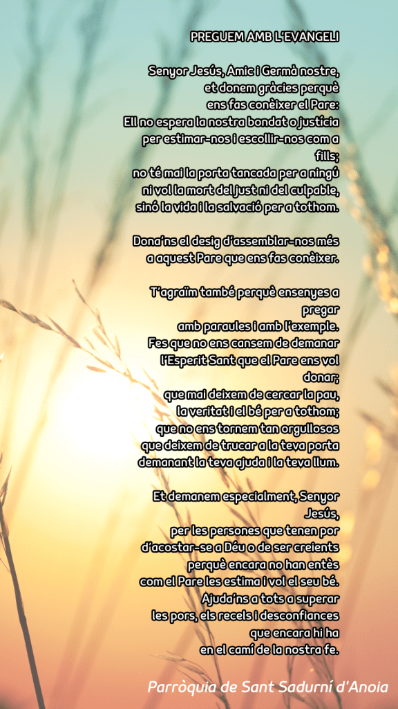 Publicat el Juliol 27, 2025 FRASE DEL DIUMENGE, PREGÀRIA I FULL DOMINICAL de Diumenge 27 de juliol de 2025 Scroll down to see more content