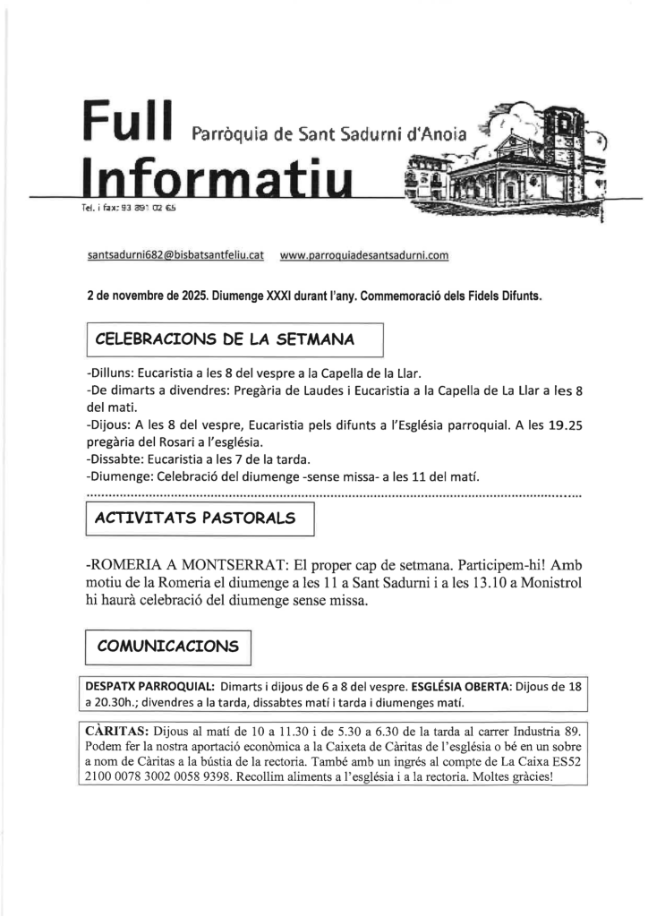 Publicat el Novembre 2, 2025 FRASE DEL DIUMENGE, PREGÀRIA I FULL DOMINICAL de Diumenge 2 de Novembre de 2025 Scroll down to see more content