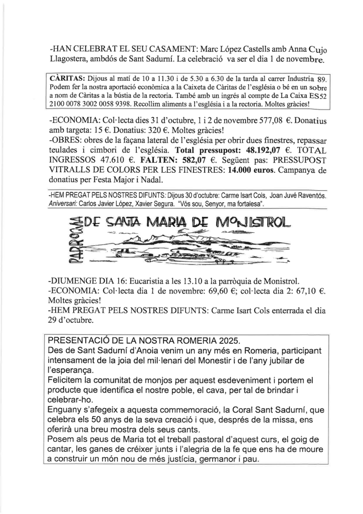 Publicat el Novembre 9, 2025 FRASE DEL DIUMENGE, PREGÀRIA I FULL DOMINICAL de Diumenge 9 de Novembre de 2025 Scroll down to see more content
