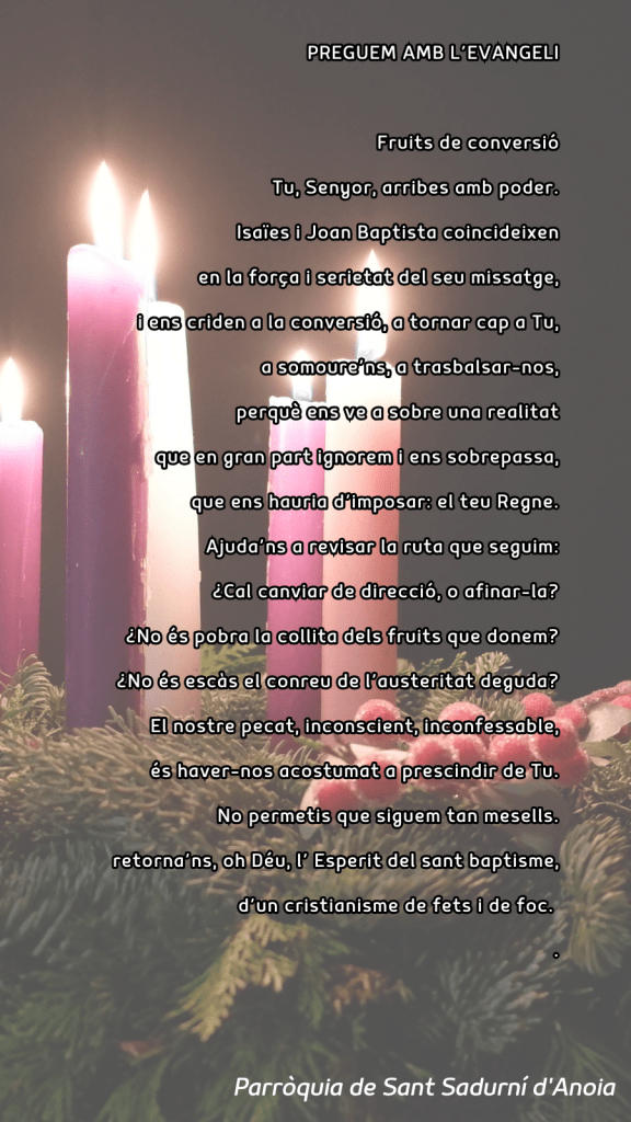 Publicat el Desembre 7, 2025 FRASE DEL DIUMENGE, PREGÀRIA I FULL DOMINICAL de Diumenge 7 de Desembre de 2025 Scroll down to see more content