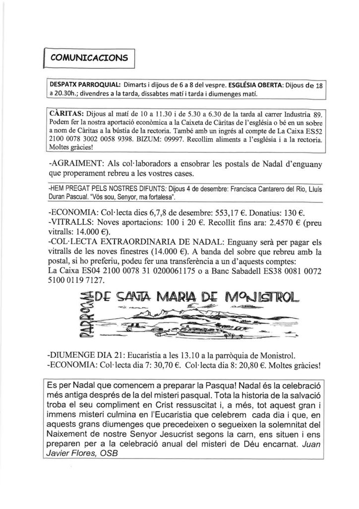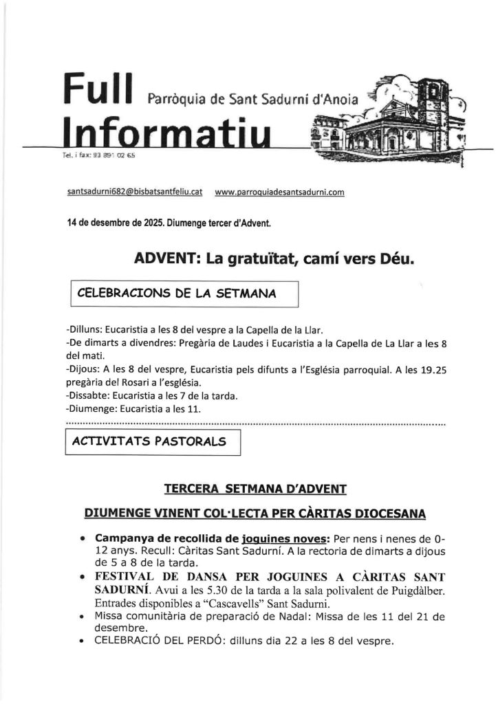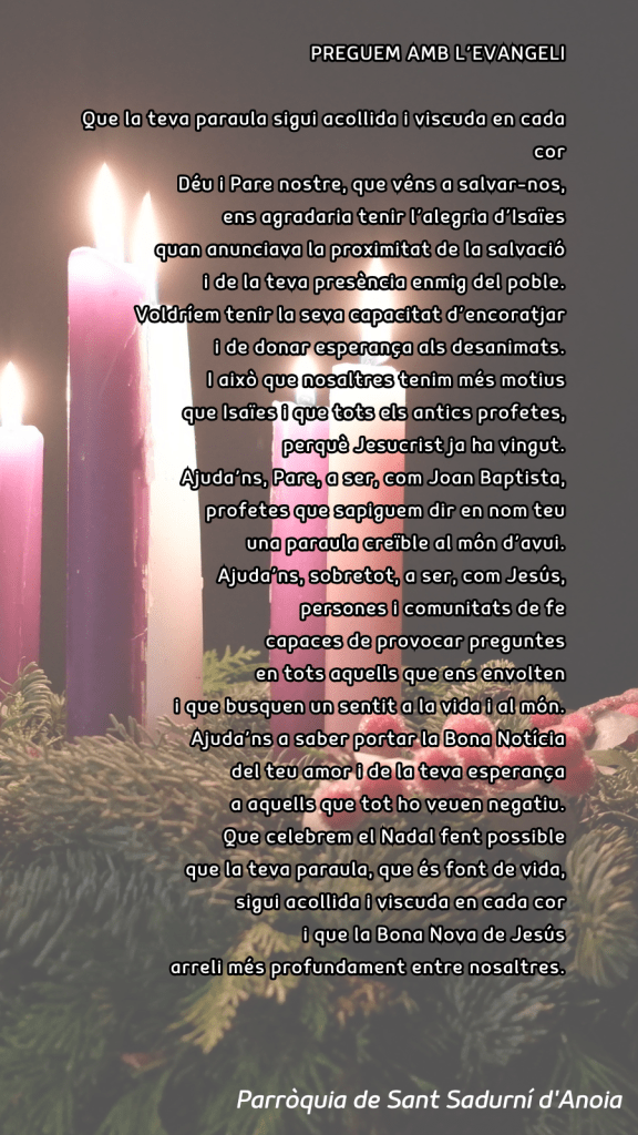Publicat el Desembre 14, 2025 FRASE DEL DIUMENGE, PREGÀRIA I FULL DOMINICAL de Diumenge 14 de Desembre de 2025