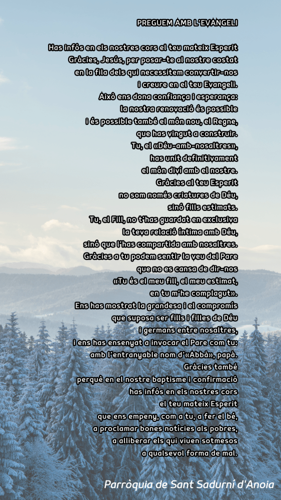 Publicat el gener 11, 2026gener 11, 2026 FRASE DEL DIUMENGE I PREGÀRIA de Diumenge 11 de Gener de 2026 Scroll down to see more content