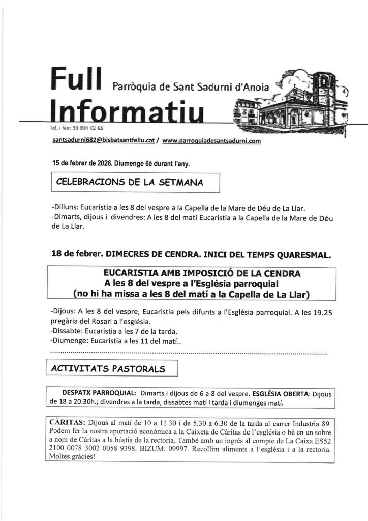 Publicat el febrer 14, 2026 FRASE DEL DIUMENGE I PREGÀRIA de Diumenge 15 de Febrer de 2026 Scroll down to see more content
