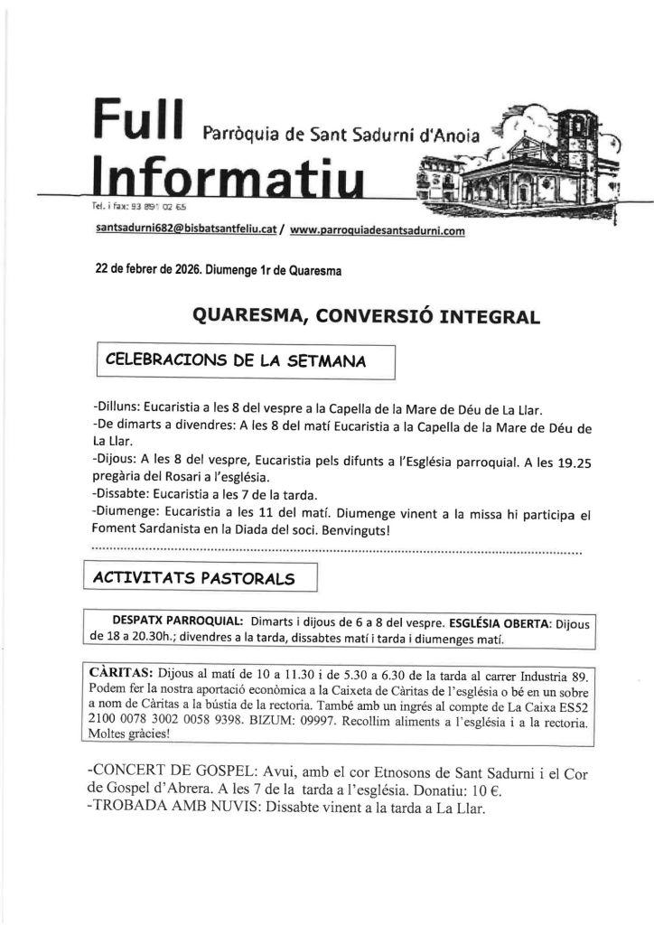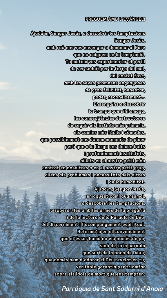 Publicat el febrer 22, 2026 FRASE DEL DIUMENGE I PREGÀRIA de Diumenge 22 de Febrer de 2026 Scroll down to see more content