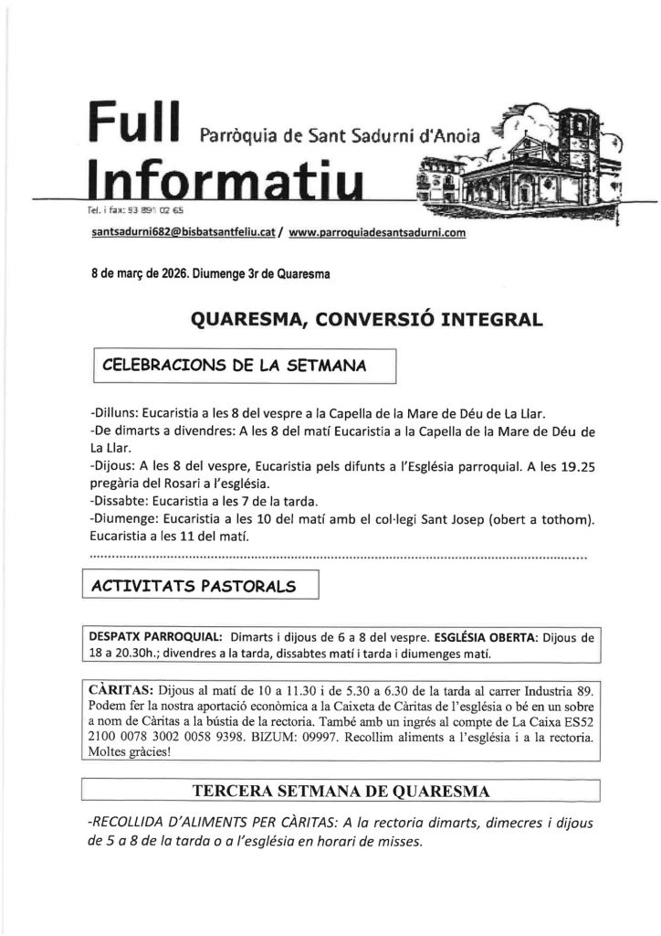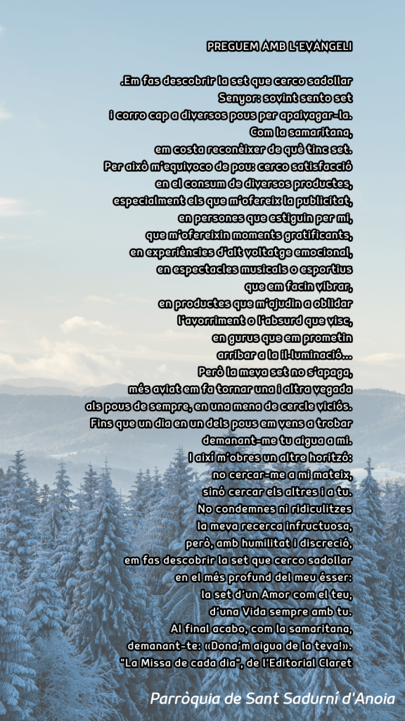 Publicat el Març 8, 2026 FRASE DEL DIUMENGE I PREGÀRIA de Diumenge 8 de Març de 2026 Scroll down to see more content