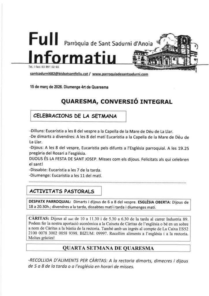 Publicat el Març 15, 2026 FRASE DEL DIUMENGE I PREGÀRIA de Diumenge 15 de Març de 2026 Scroll down to see more content