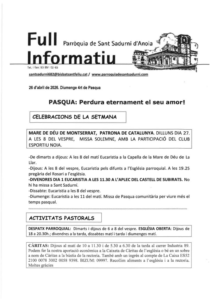 Publicat el Abril 26, 2026 FRASE DEL DIUMENGE I PREGÀRIA de Diumenge 26 d’abril de 2026 Scroll down to see more content